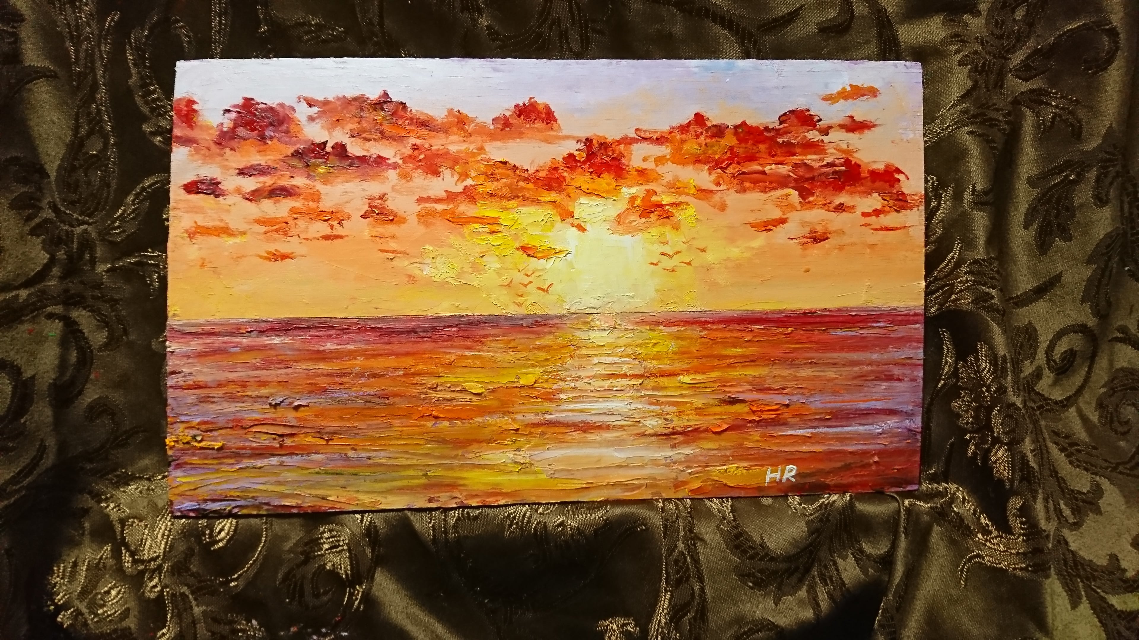【油絵】「海」(Q)ベニヤ板 油絵、絵画、美術