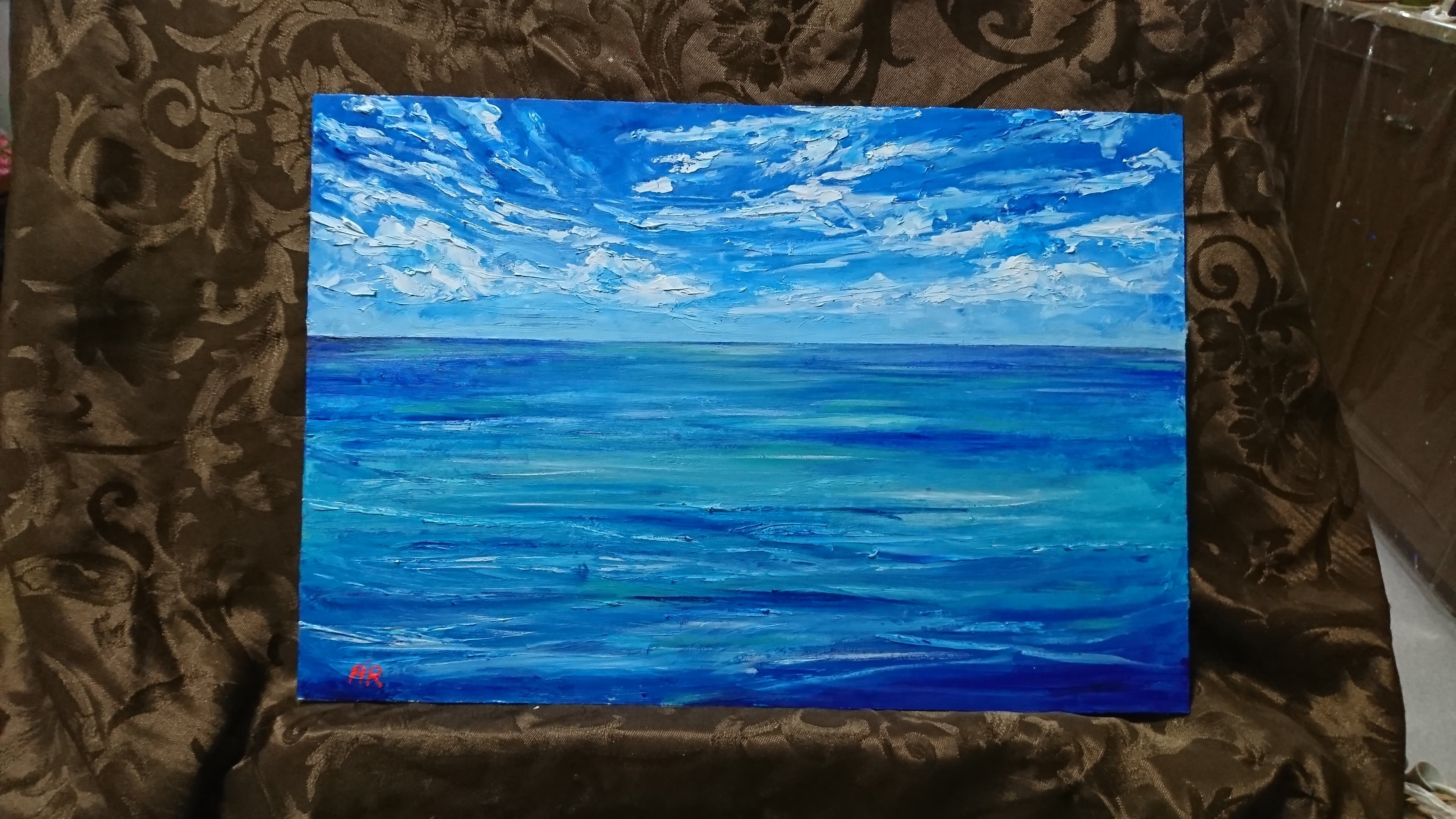 コピー:【油絵】「海」(P)ベニヤ板 油絵、絵画、美術