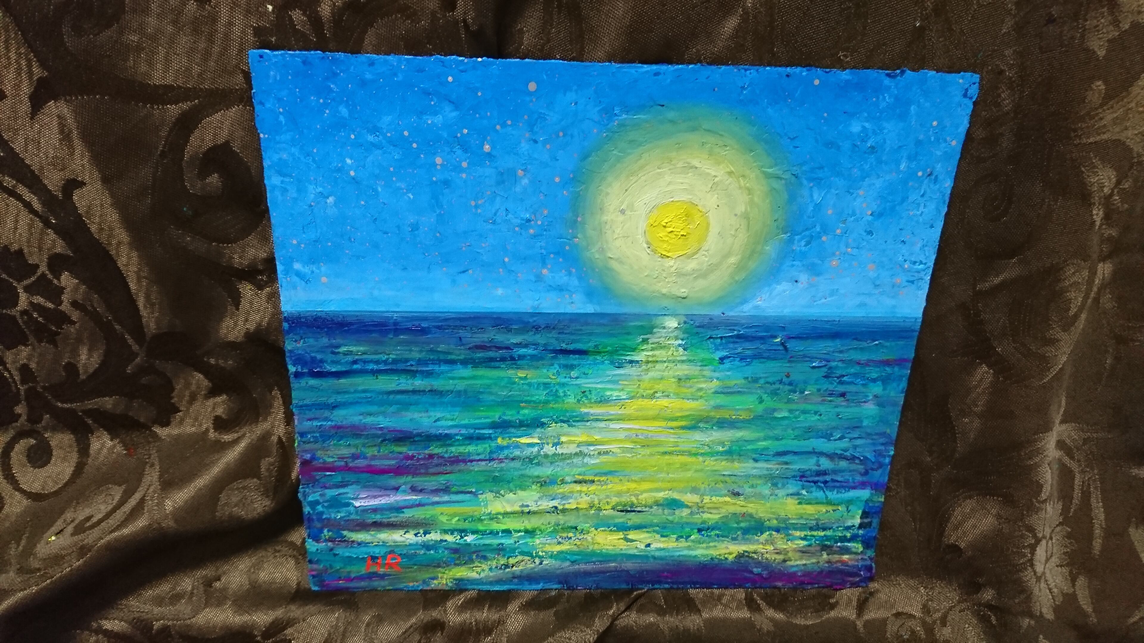 【油絵】「海」(S)色紙、 油絵、絵画、美術