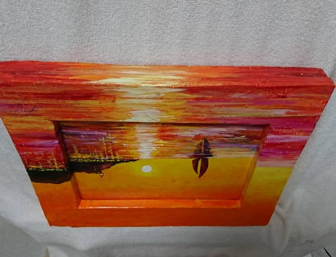 【油絵】「海」(V)厚紙 油絵、絵画、美術