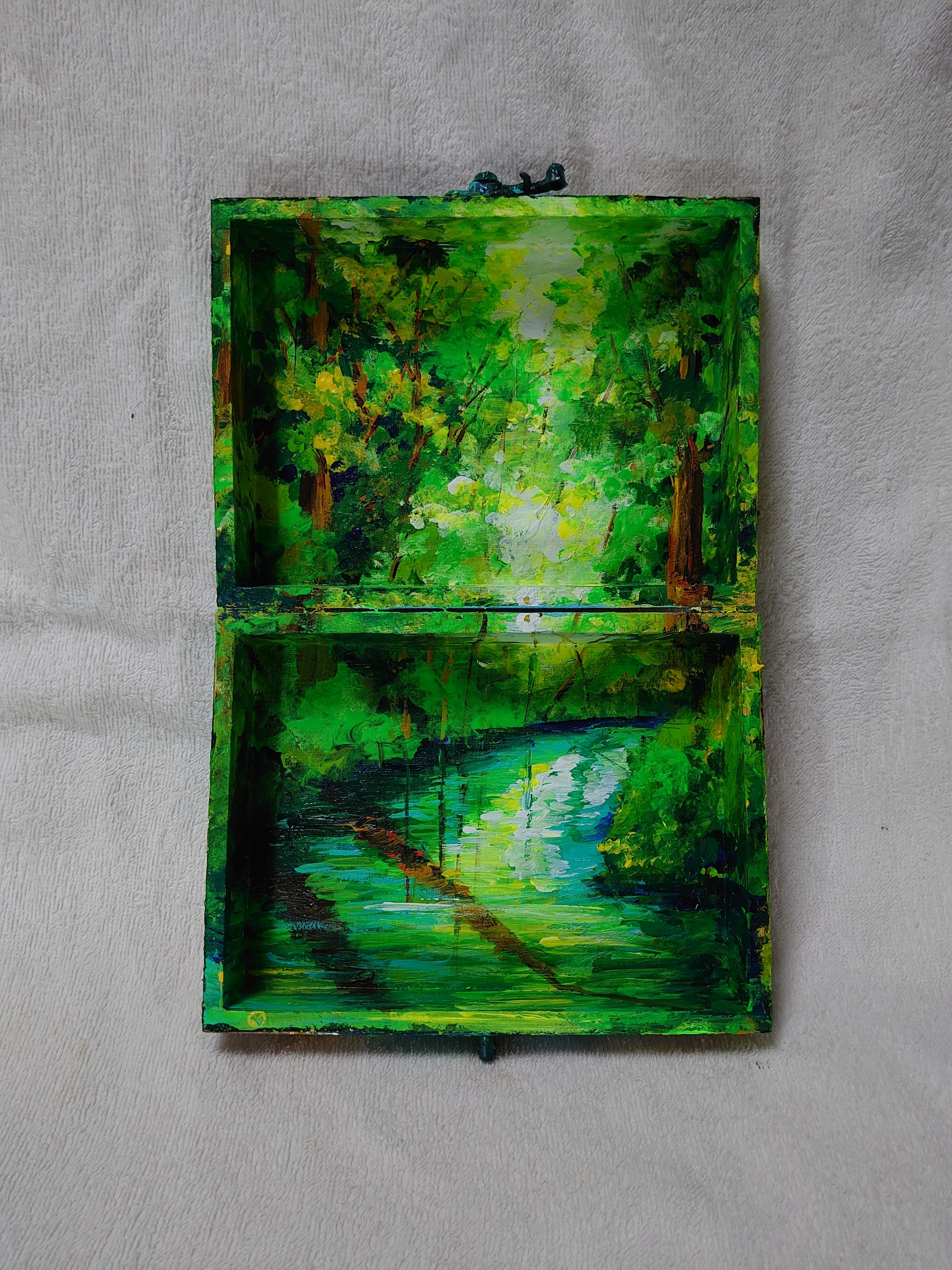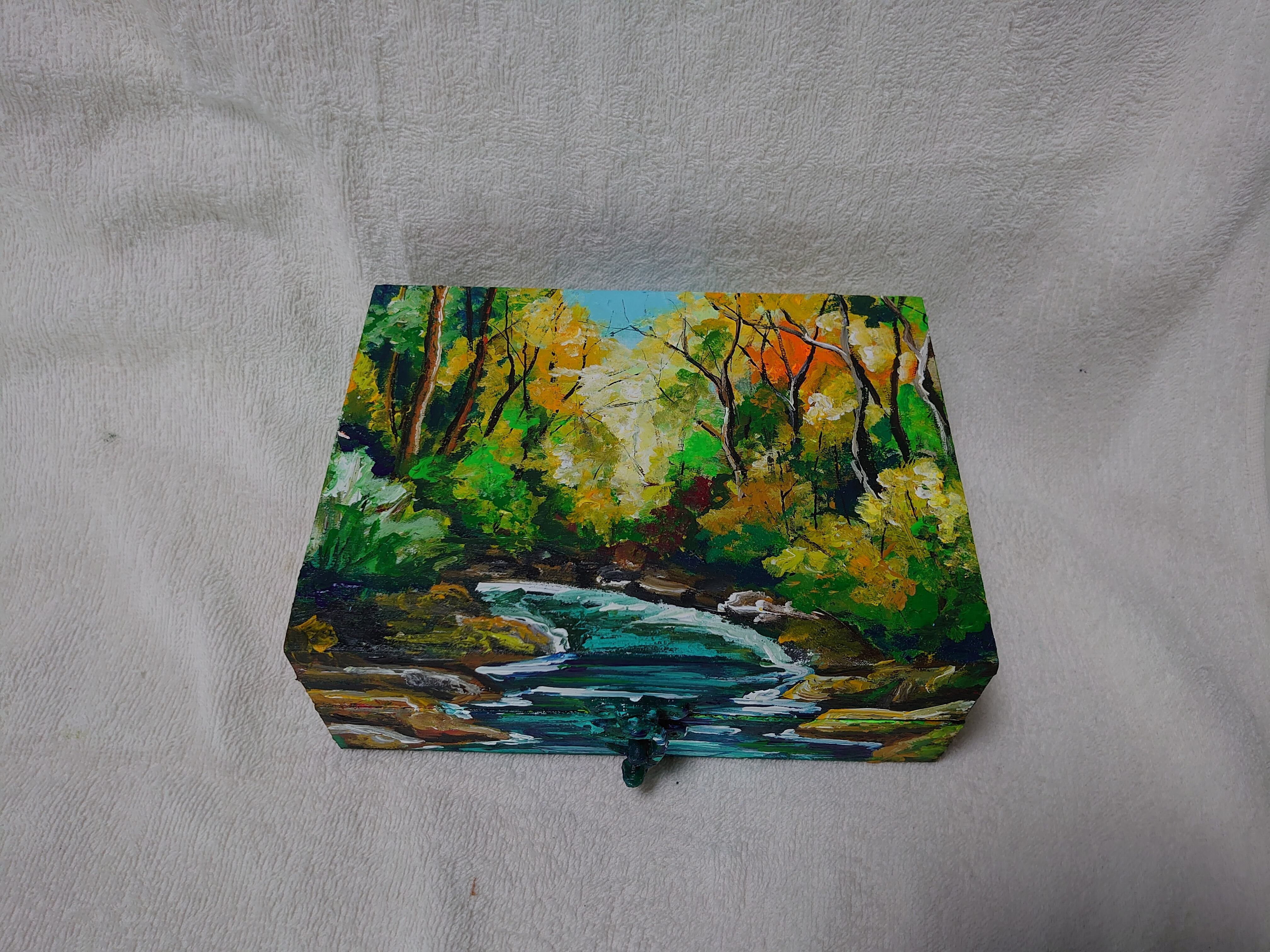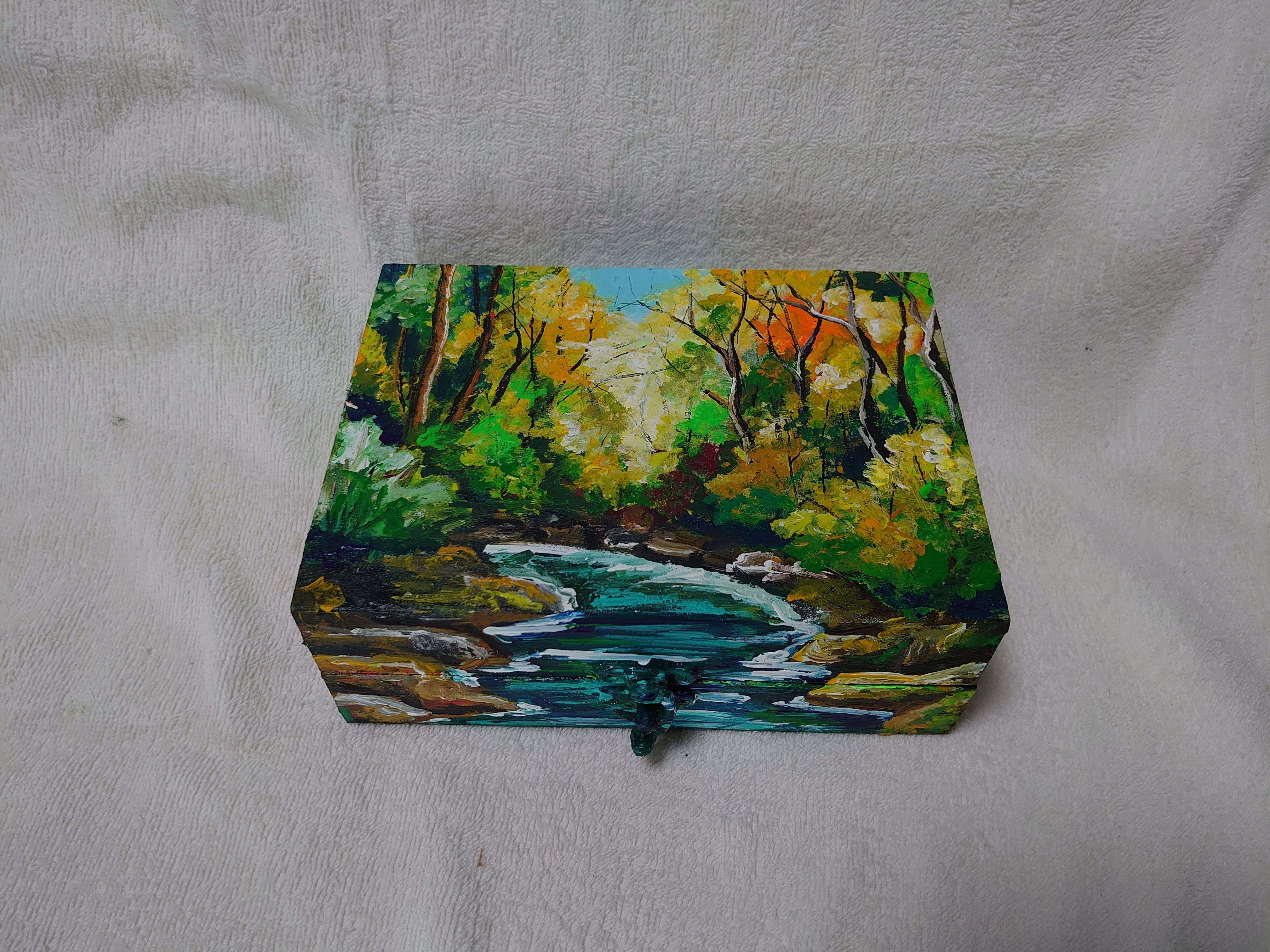 【材料】アクリル絵の具、油絵の具、木製、手作りボックス、