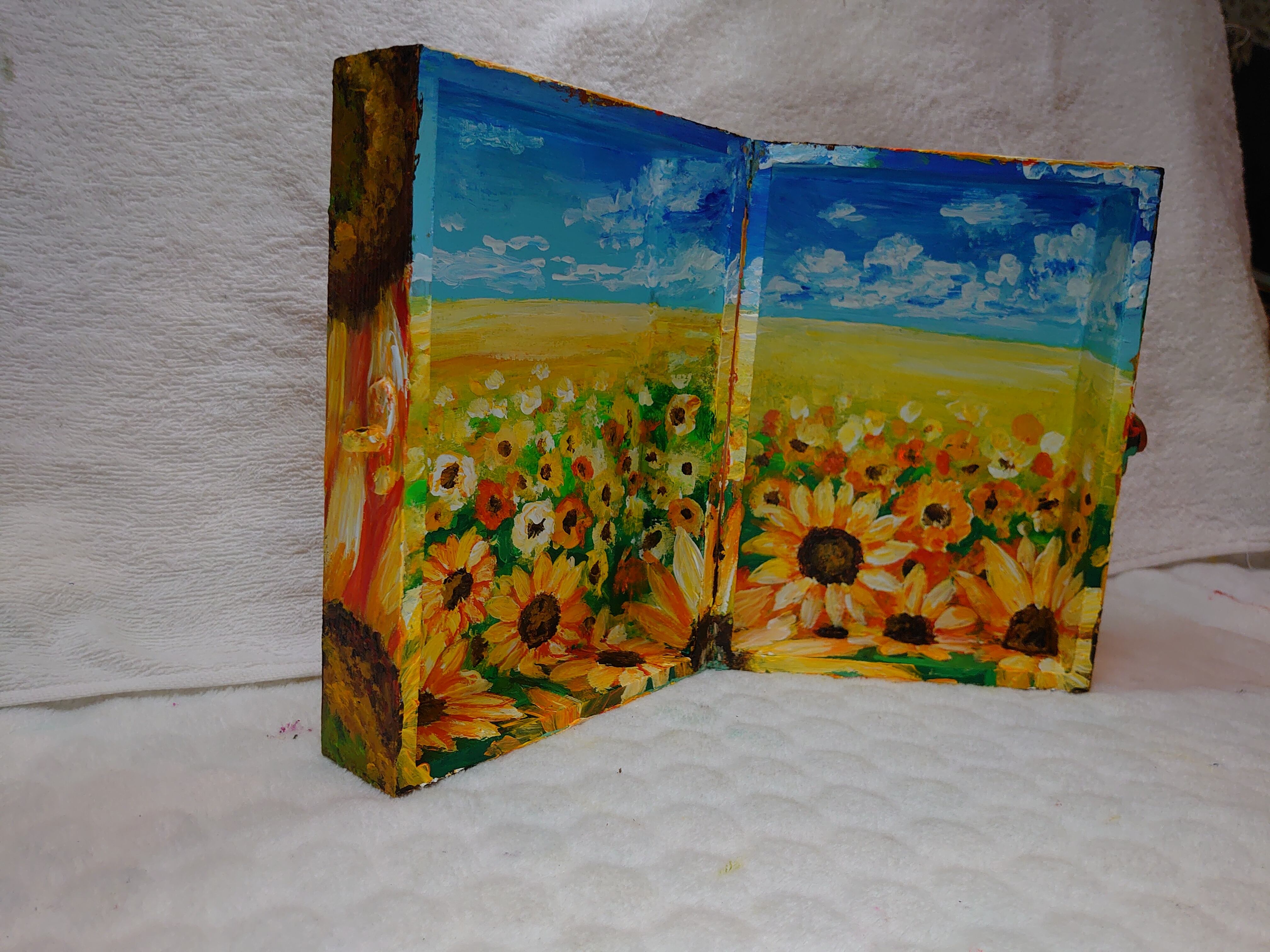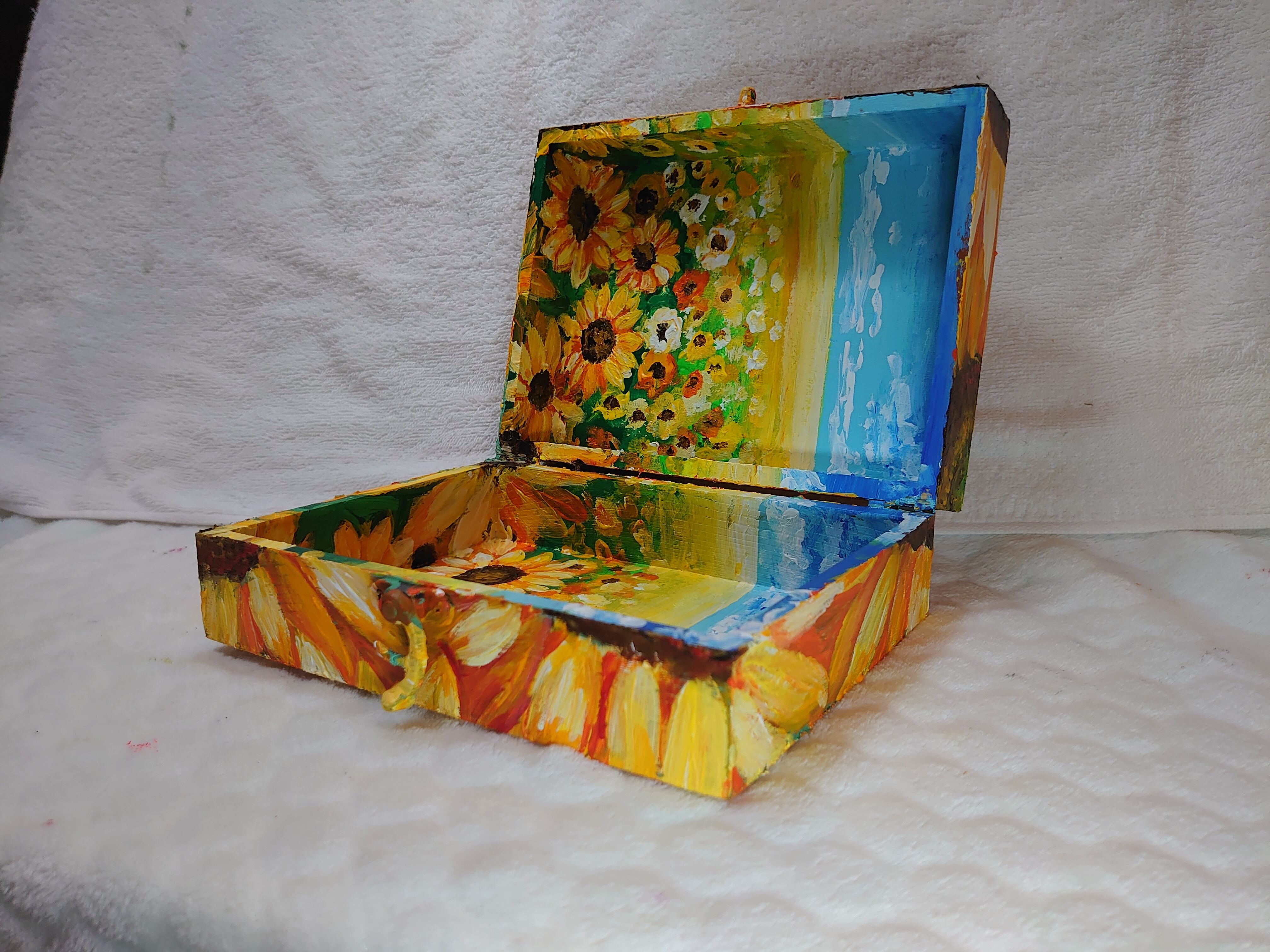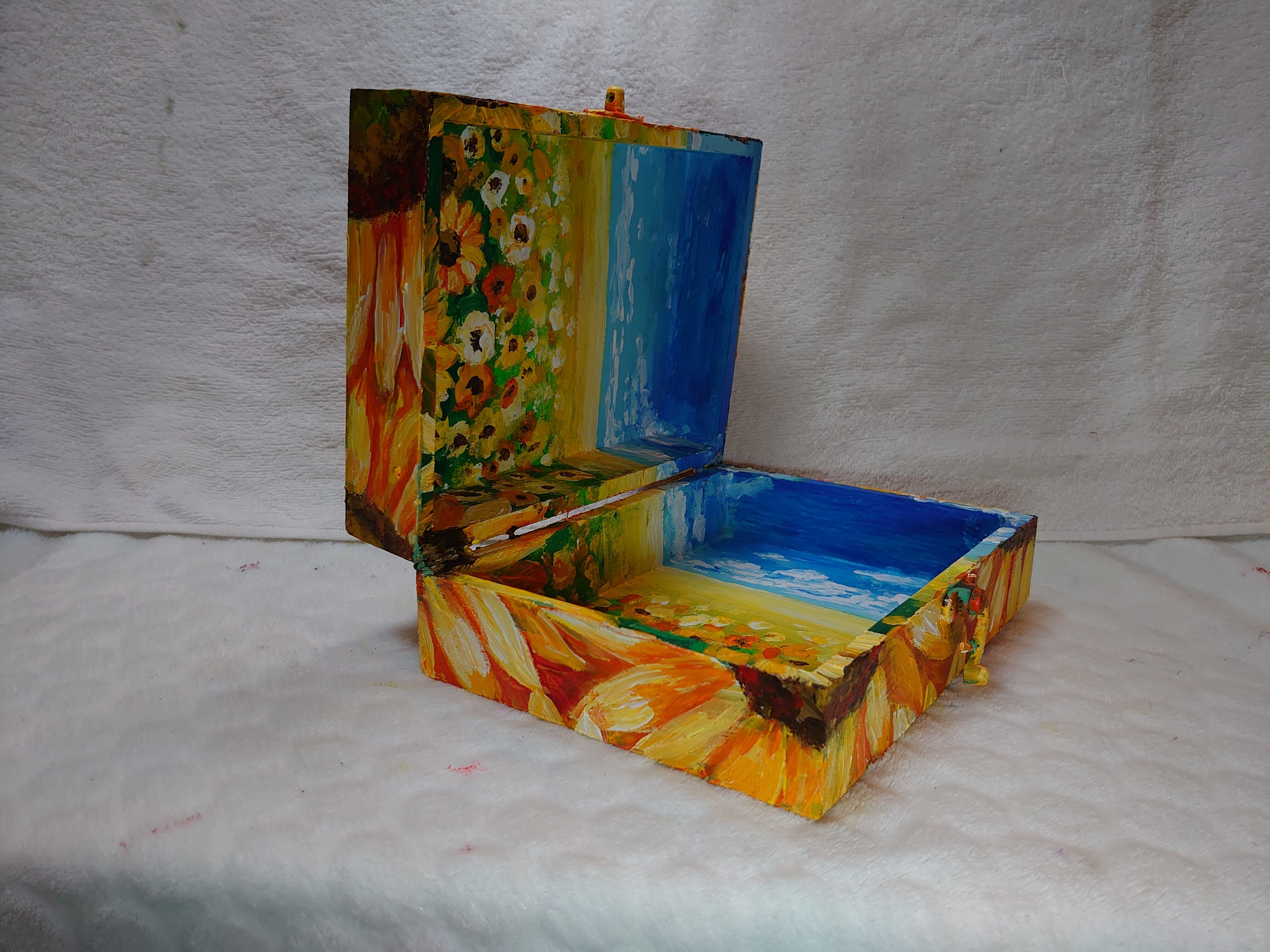 【材料】アクリル絵の具、油絵の具、木製、手作りボックス、
