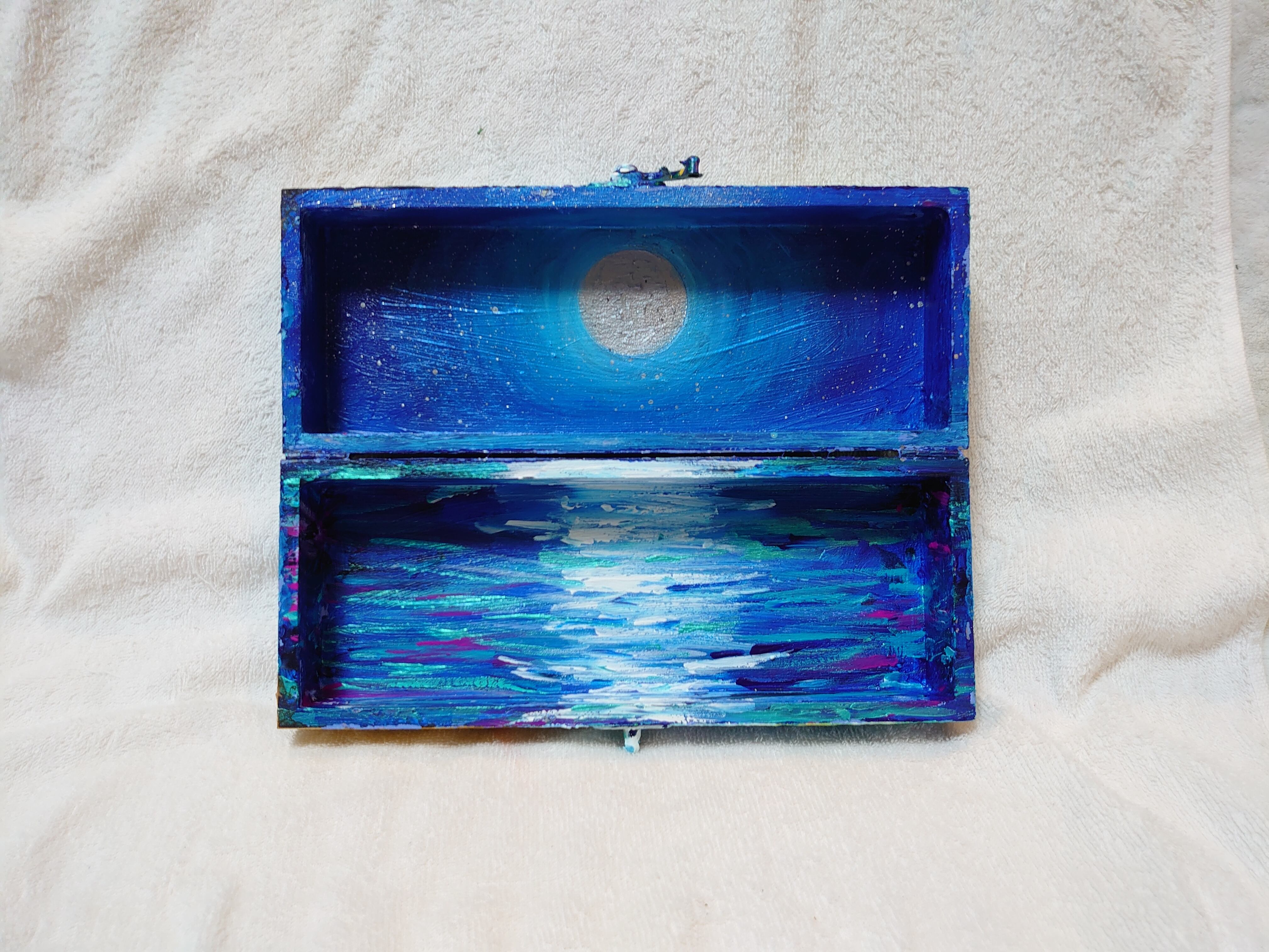 【材料】アクリル絵の具、油絵の具、木製、手作りボックス、