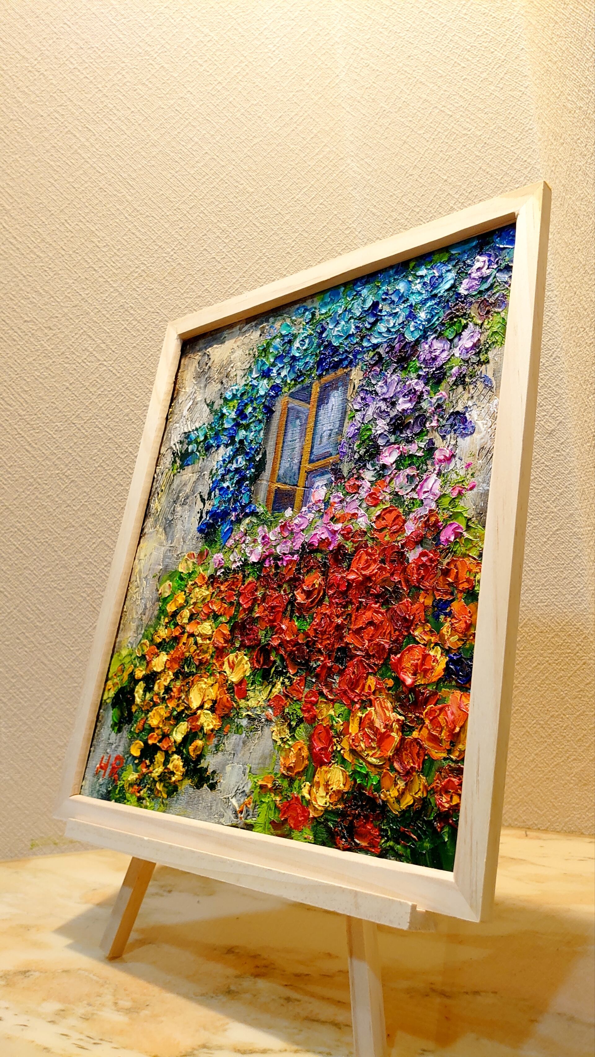 【ベランダ 薔薇】 油絵/絵画/絵/油彩