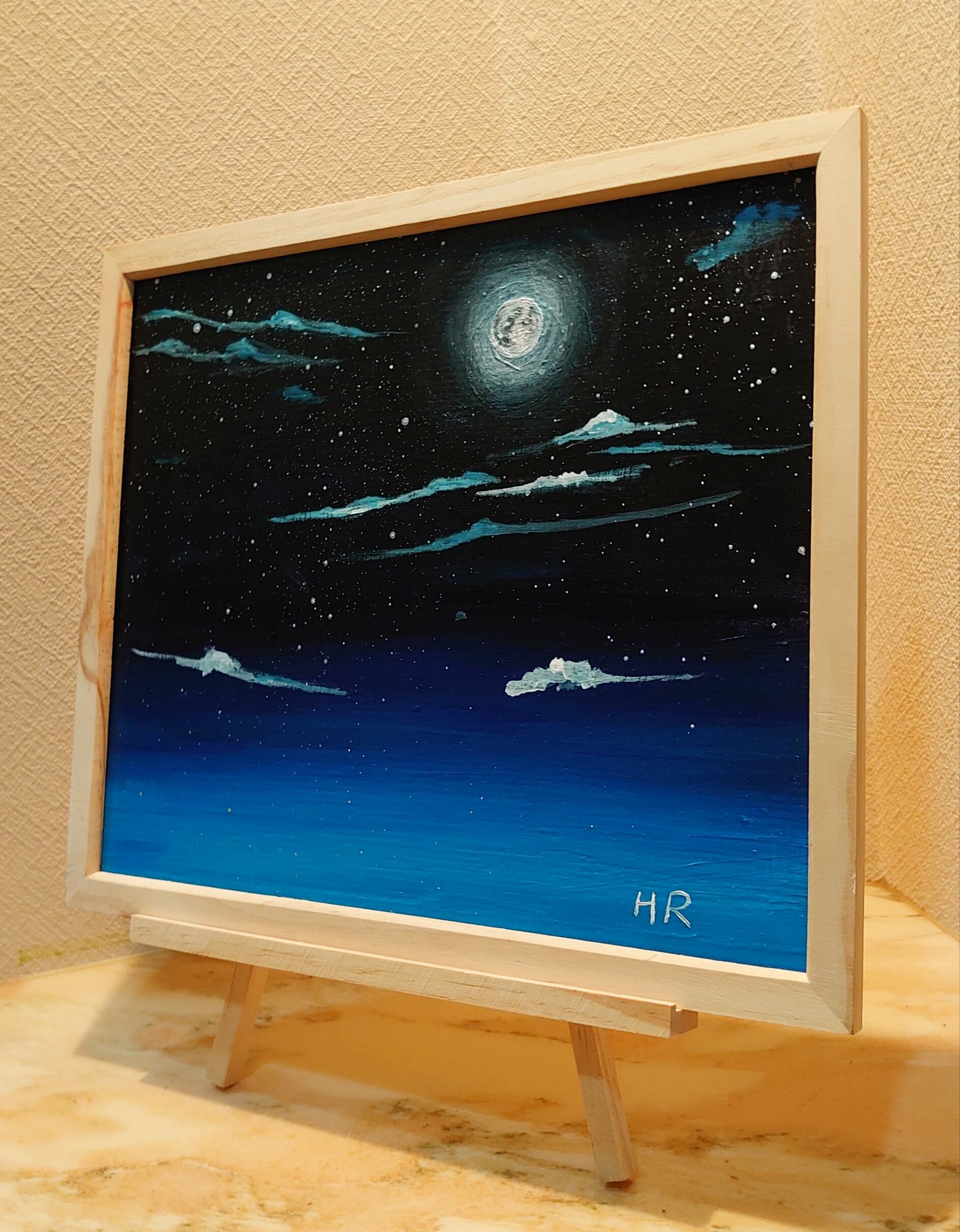 【夜空の月】油絵/絵画/油彩/油彩画/絵/インテリア