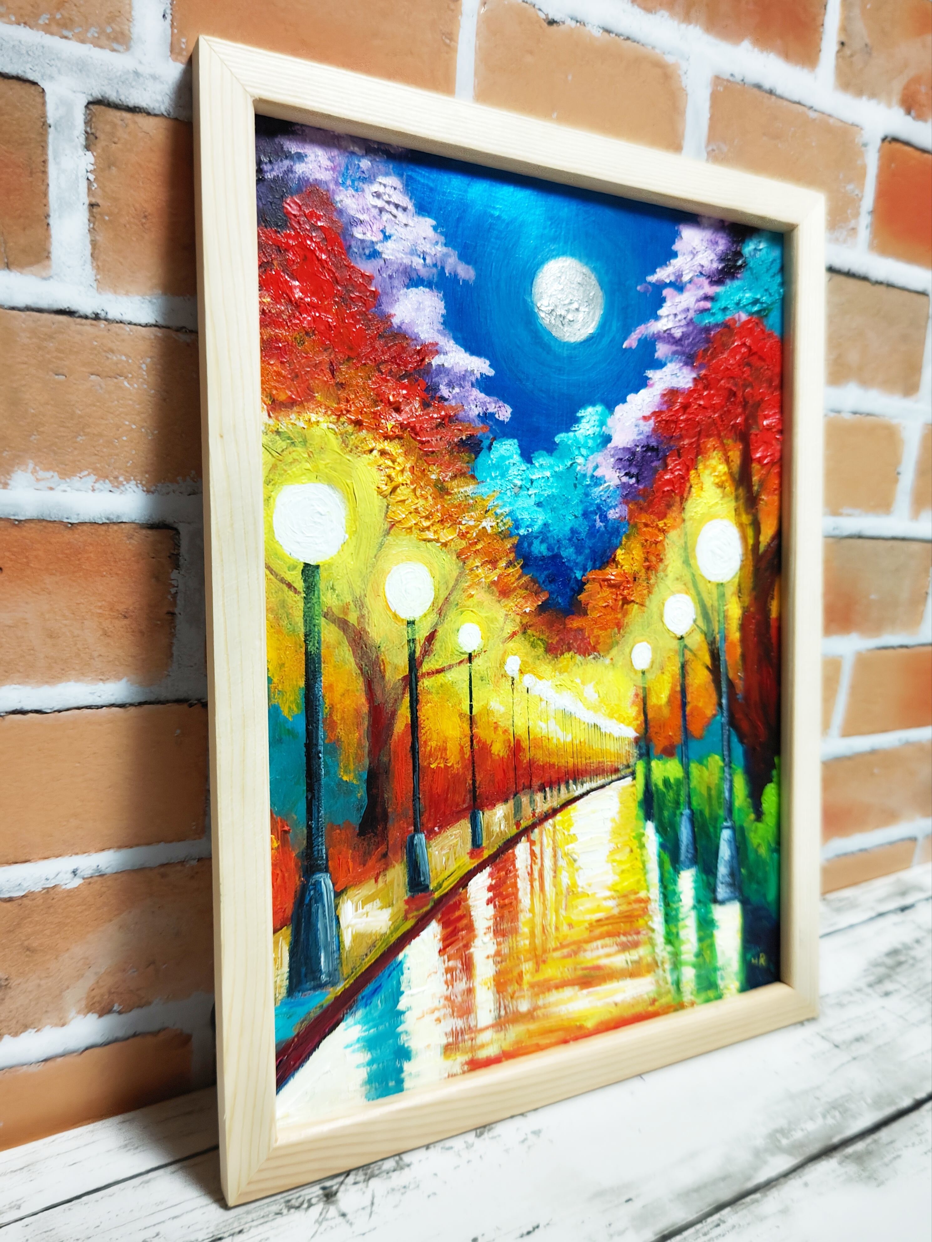 【モチーフ】 #秋 #紅葉 #夜 #灯り #ライト #月 #満月