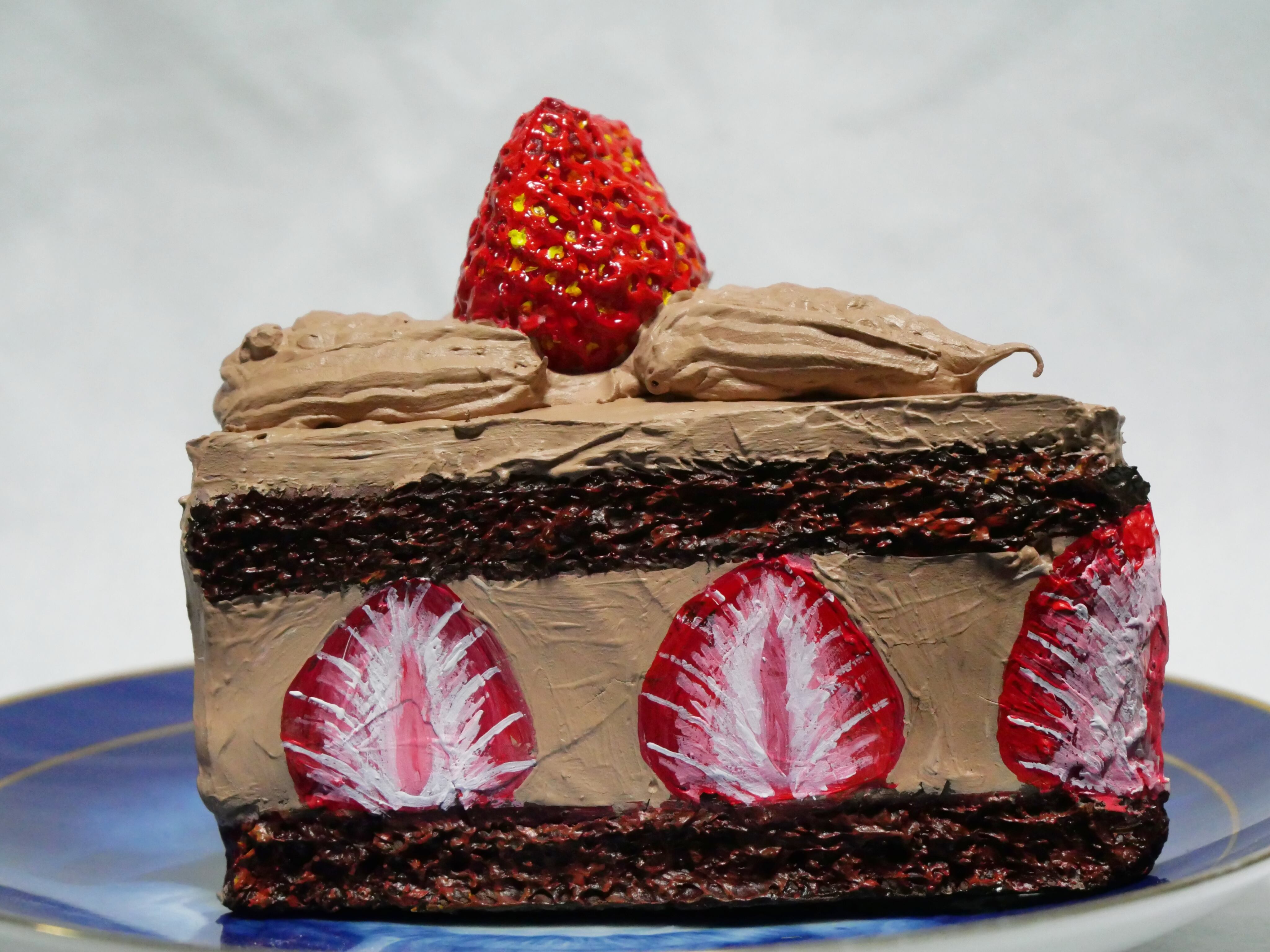 油絵オブジェ 【苺のチョコレートショートケーキ】