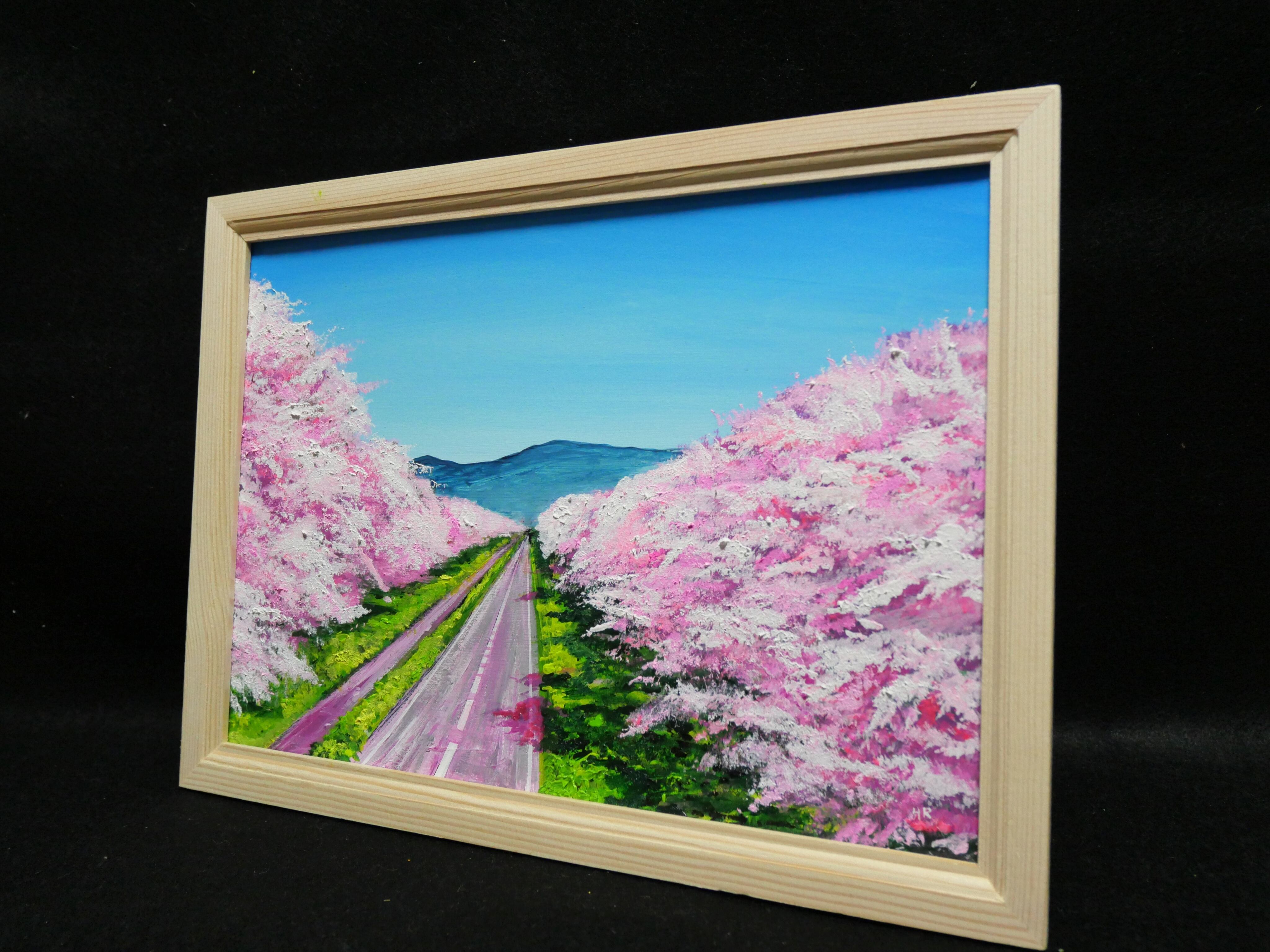 油絵 絵画 【桜並木の道】