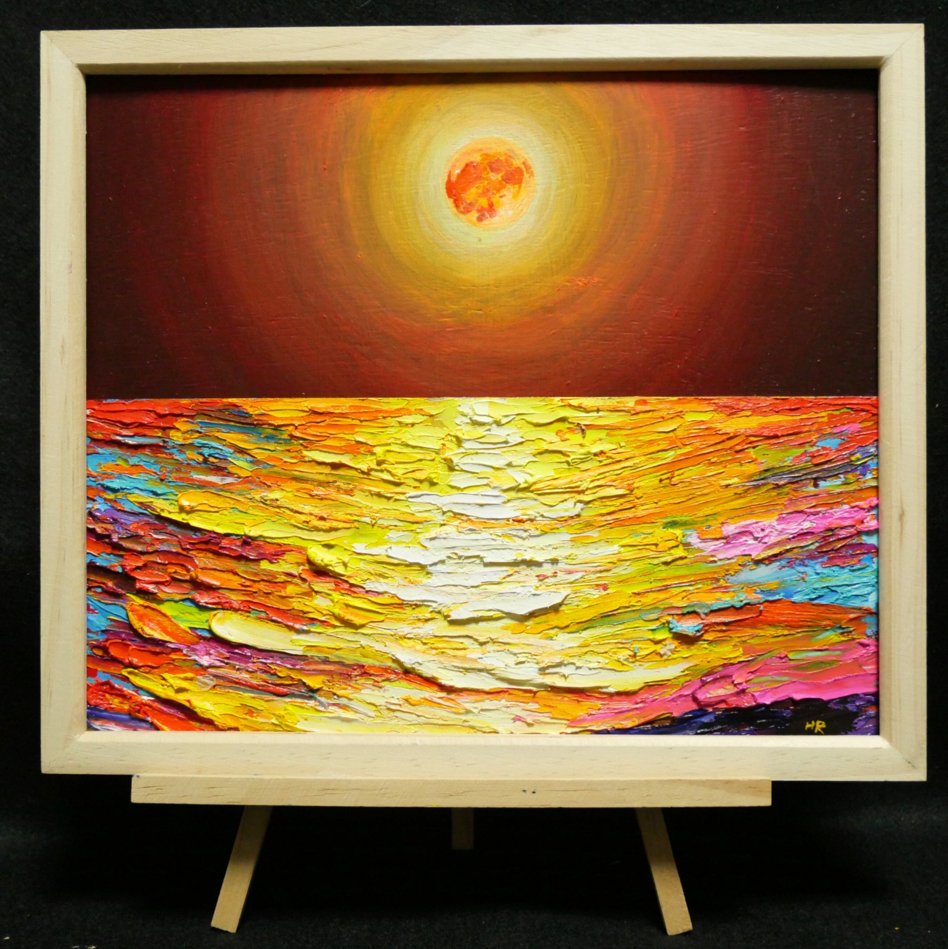 油絵 絵画 オレンジの月【四切木製】