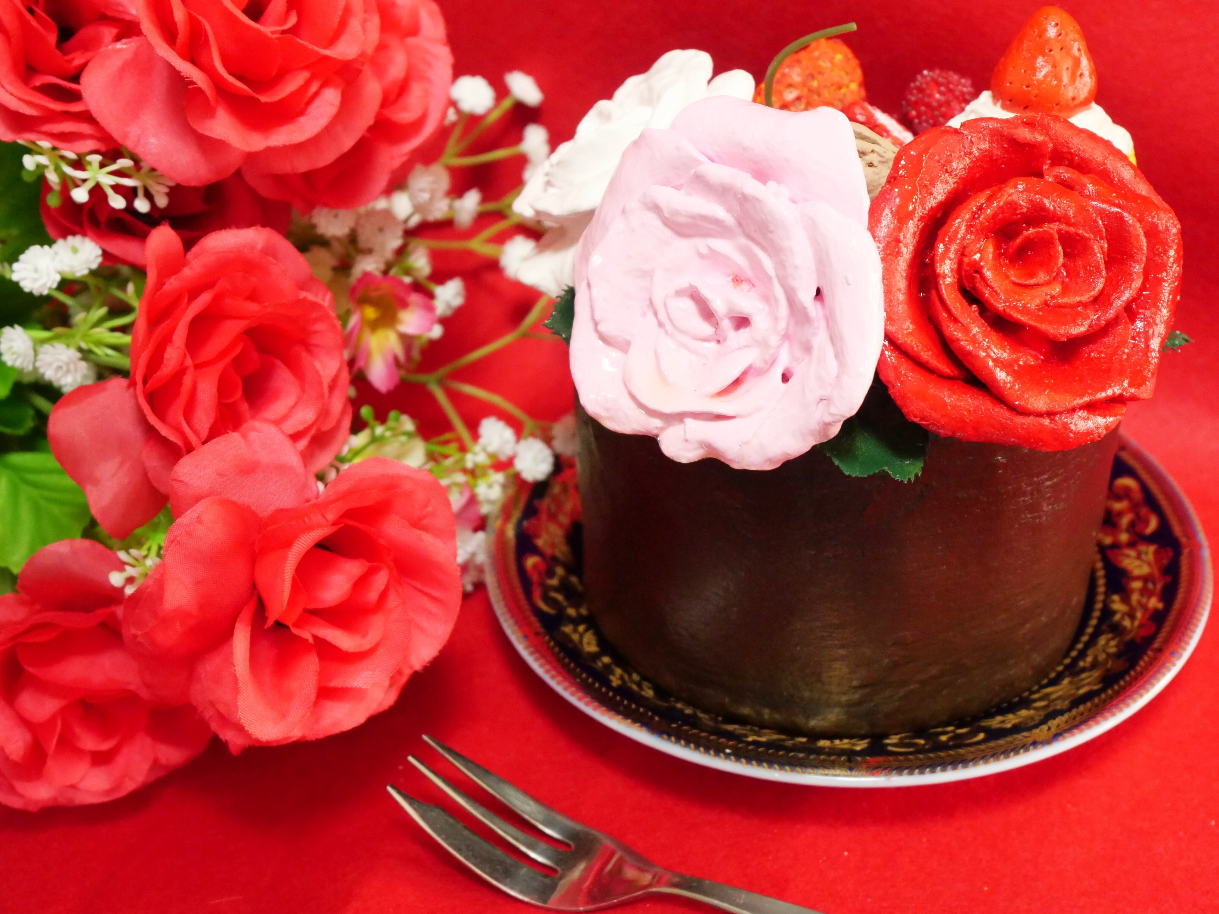 【モチーフ】 #洋菓子 #お菓子 #ホールケーキ #ケーキ #チョコケーキ #スイーツ #チョコレート #ラズベリー #ブルーベリー #マカロン #フルーツ #ショートケーキ