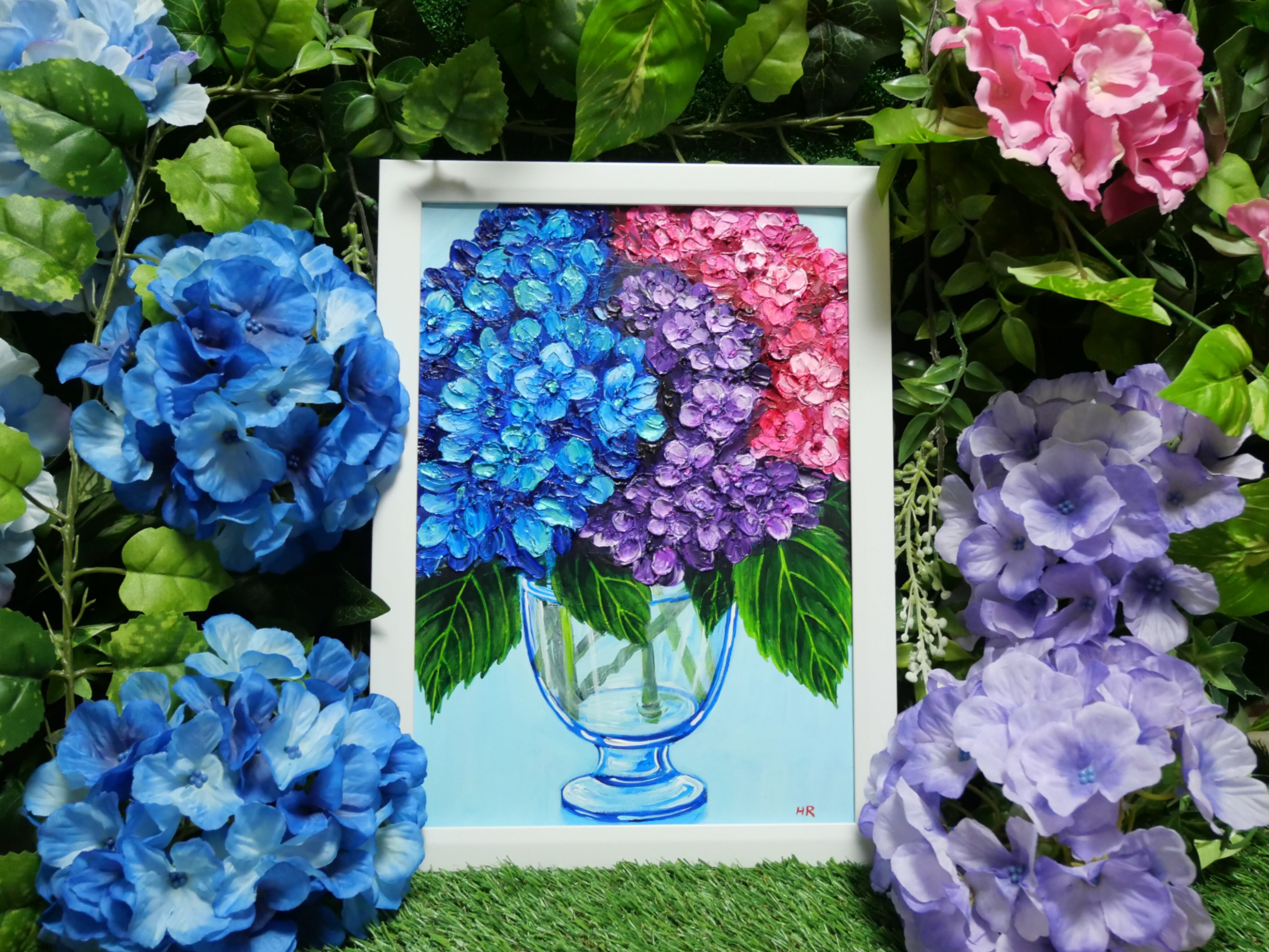 油絵 絵画 【アジサイの花】