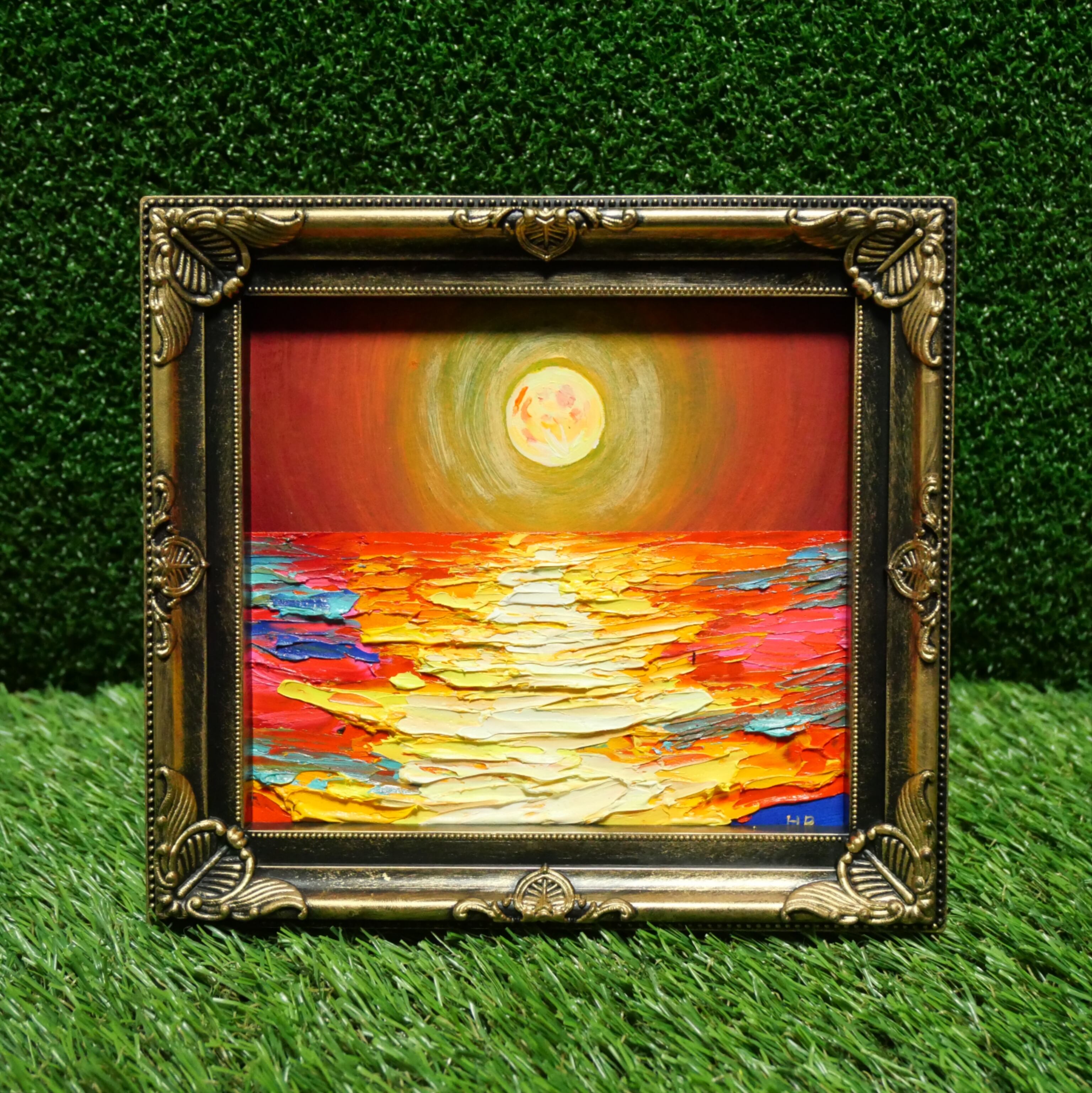 油絵 ミニ色紙【オレンジの月】