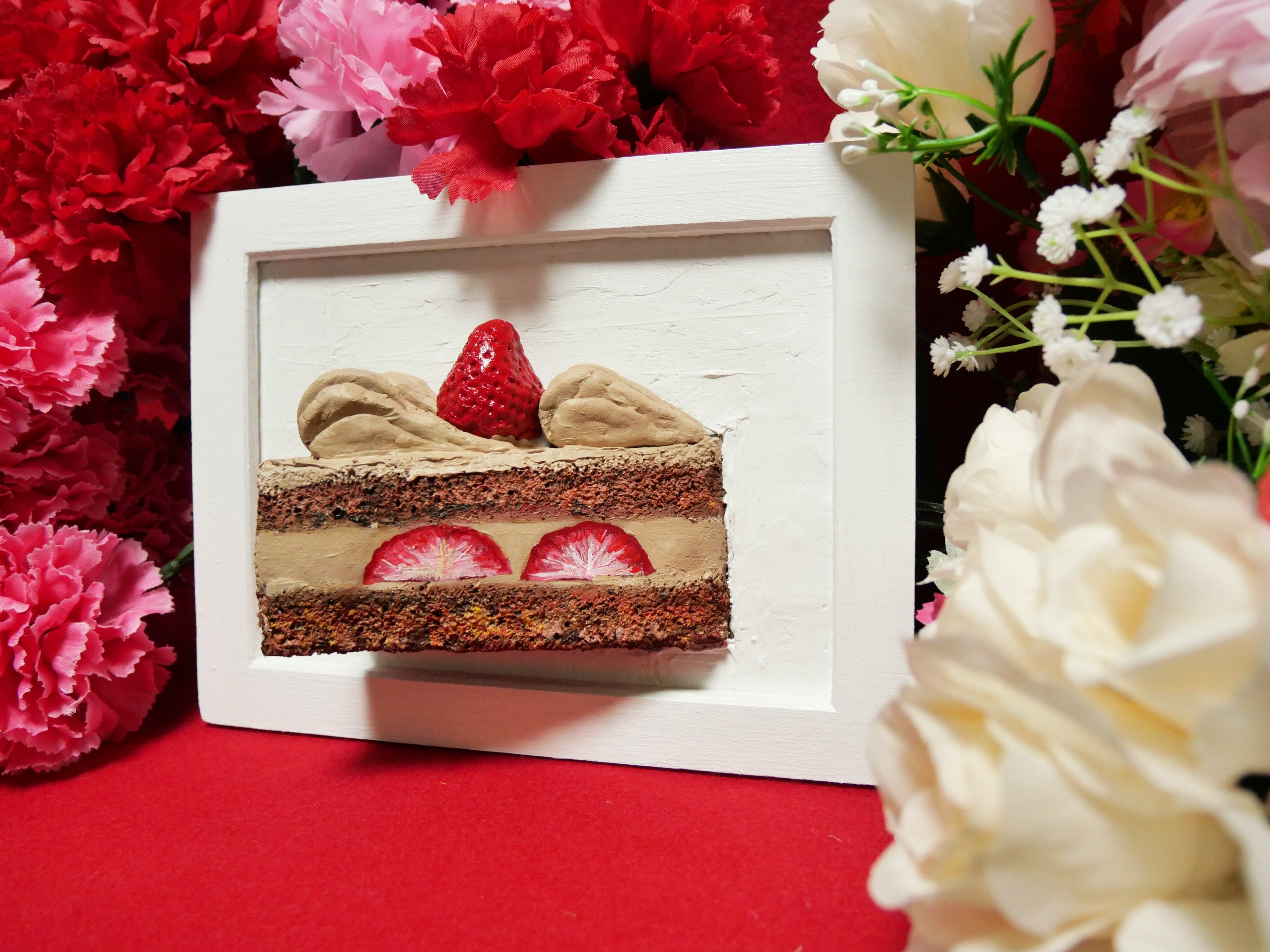 油絵 絵画 【飛び出すいちごチョコケーキ】