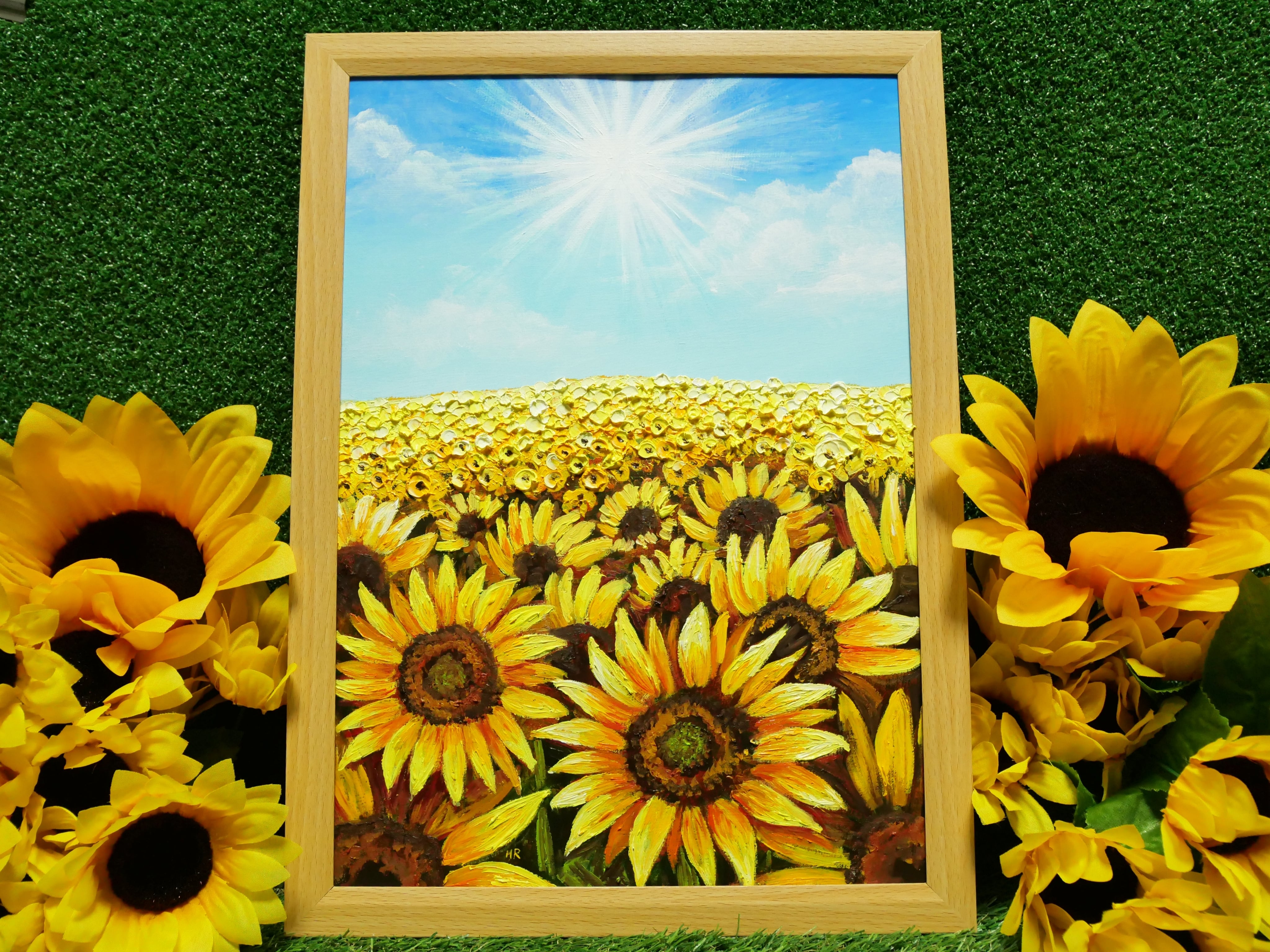 油絵 絵画 【夏空と太陽とひまわり畑】