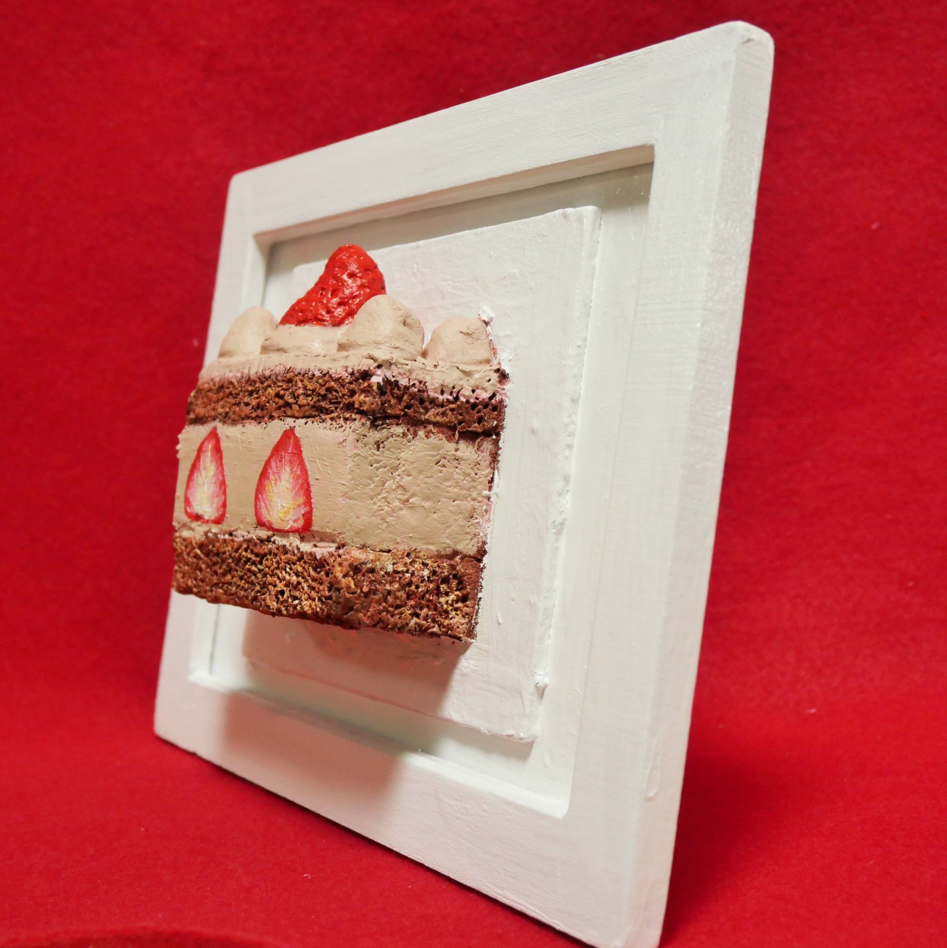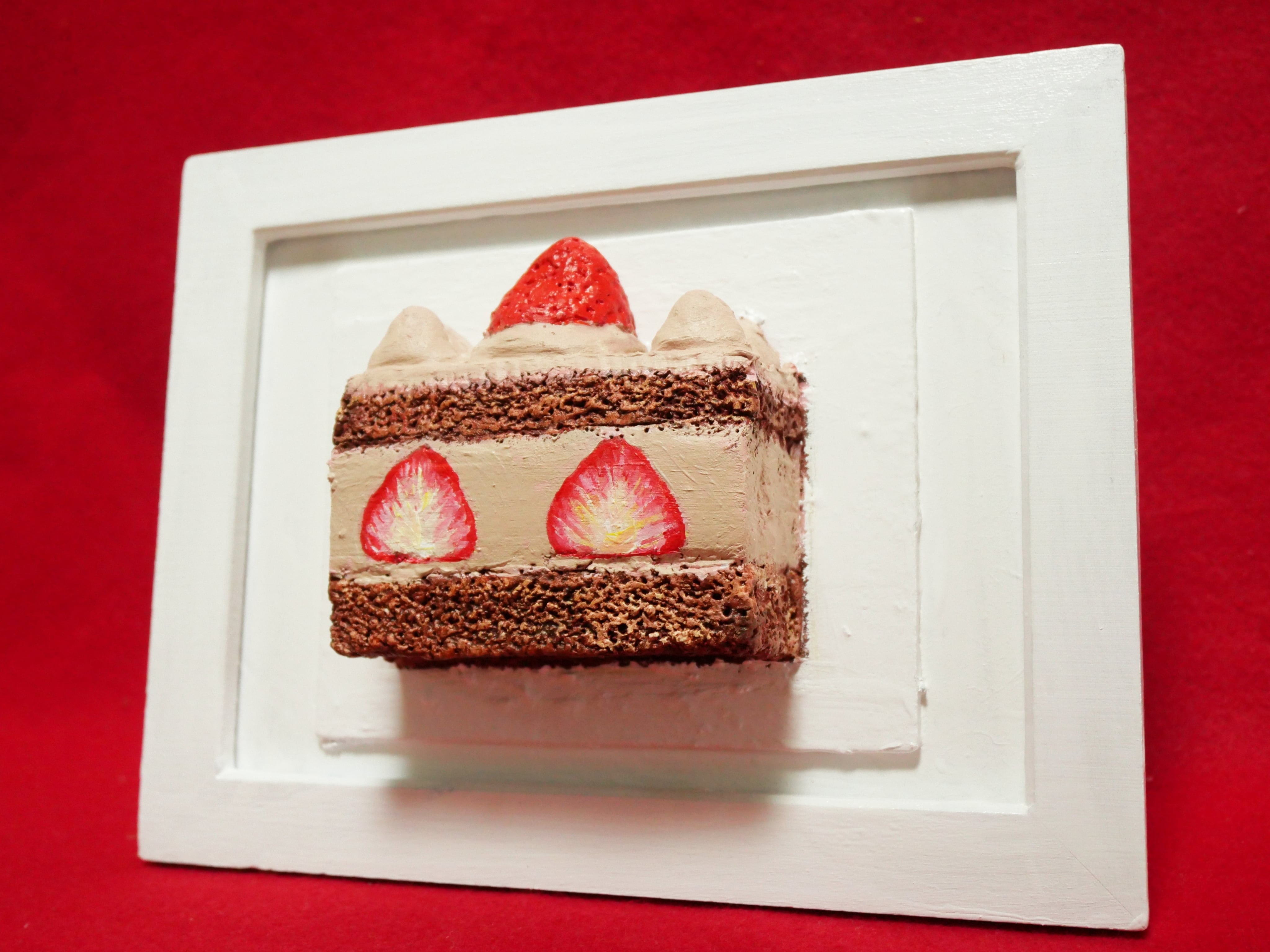 油絵 絵画 【飛び出すイチゴチョコケーキ】