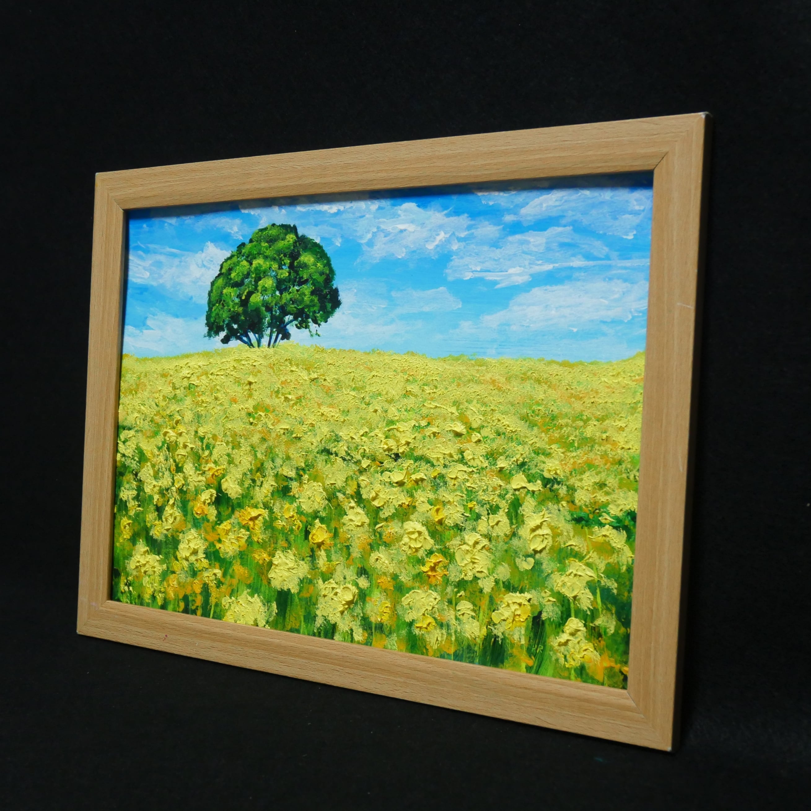 油絵 油彩 油彩画 絵 絵画 【黄色い菜の花畑の一本木】