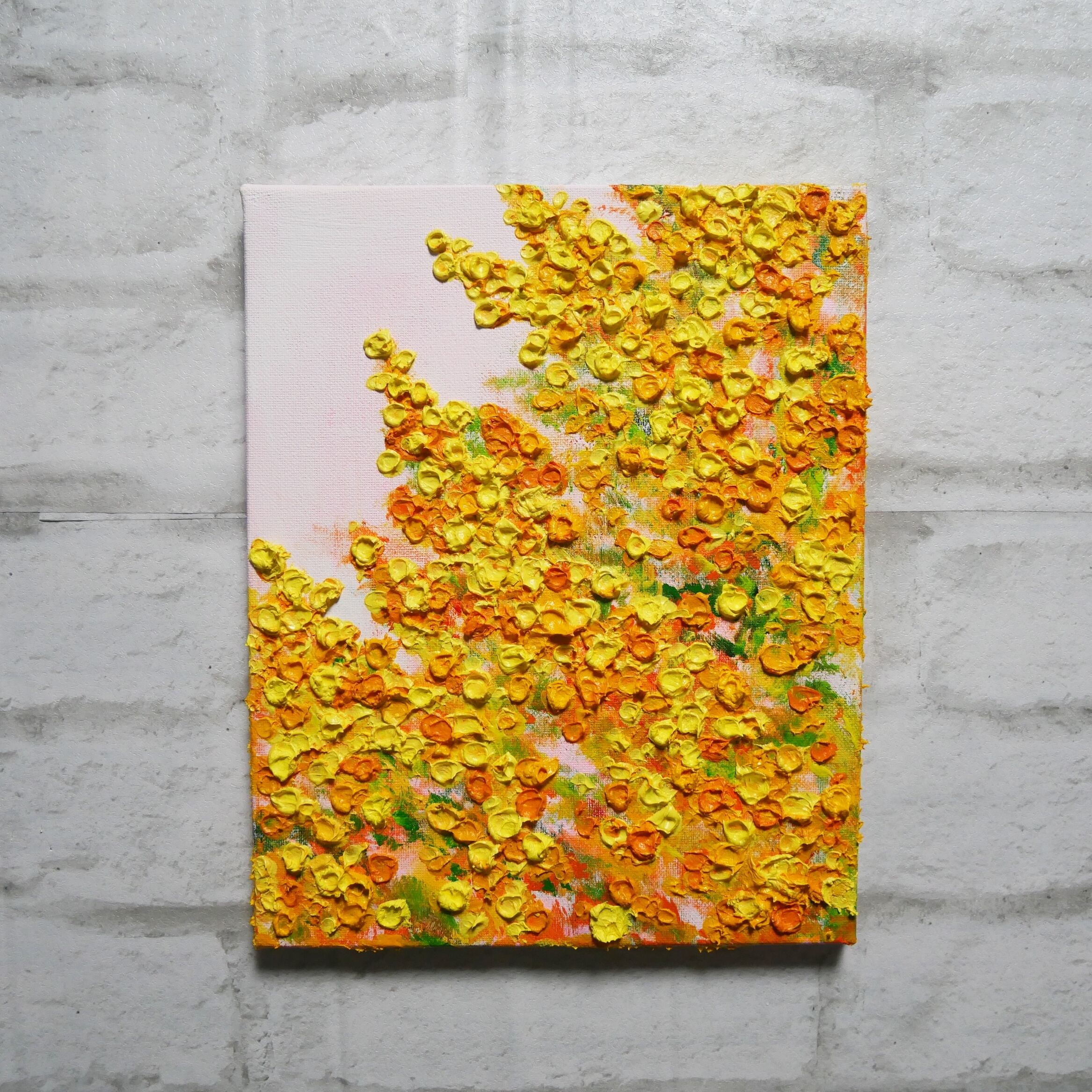 油絵【春のミモザ】は、豊かな色彩が溢れる美しい絵画です。優しい色合いのミモザの花が描かれたこの作品は、明るい春の陽光を感じさせてくれます。