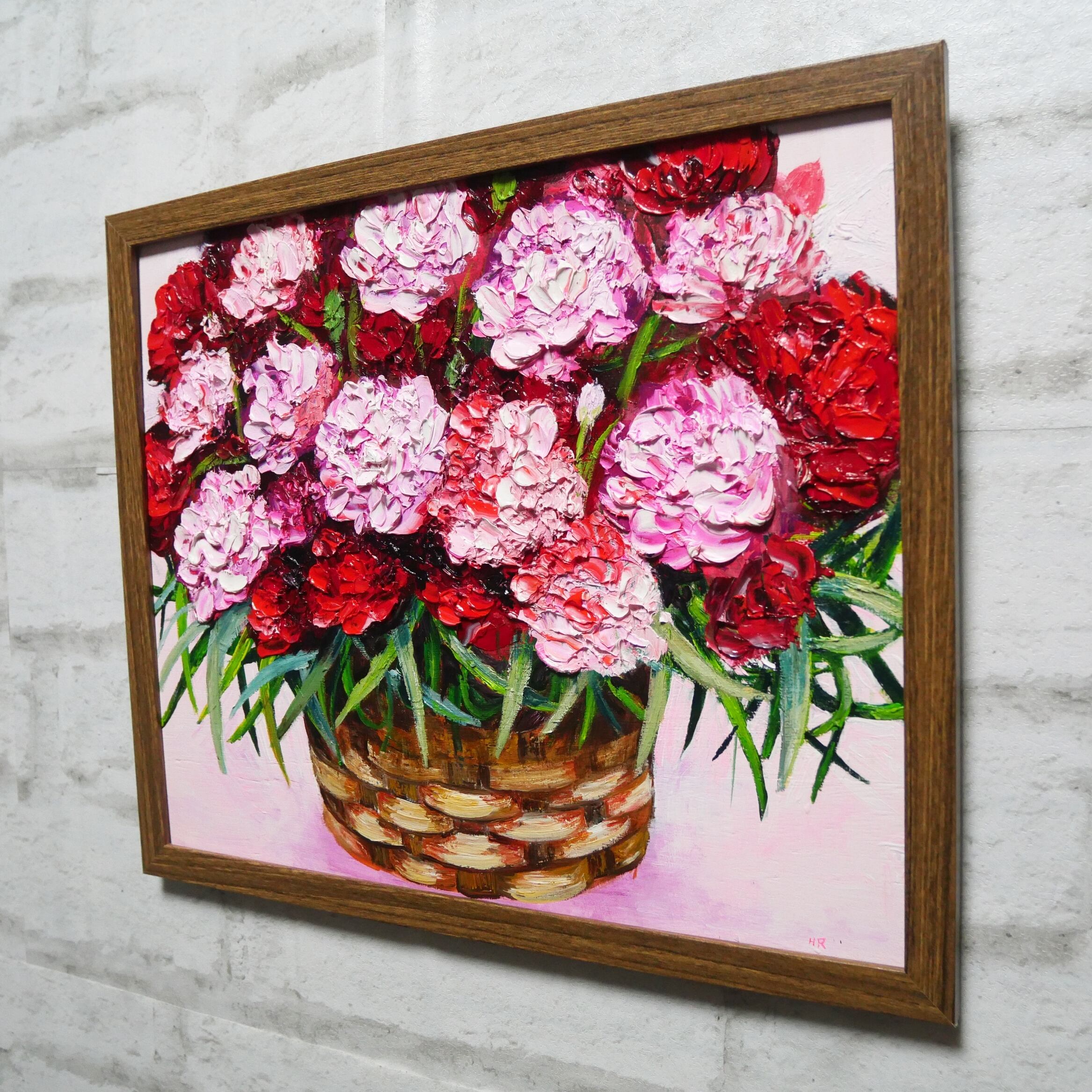 カーネーションの美しさを永遠に閉じ込めた描いた油絵です。