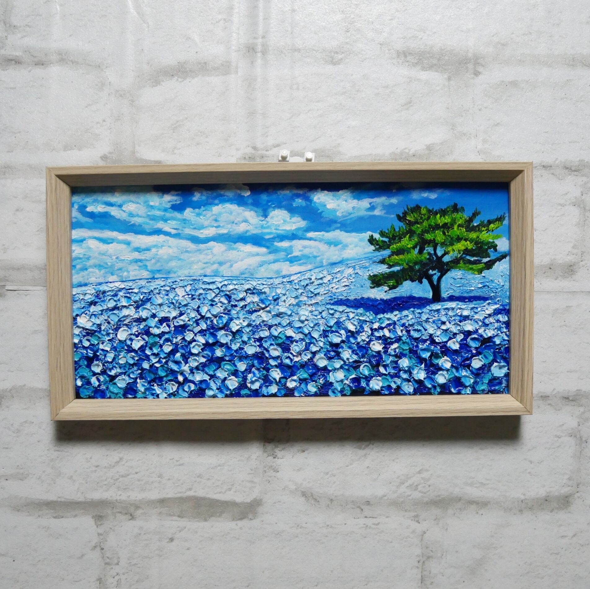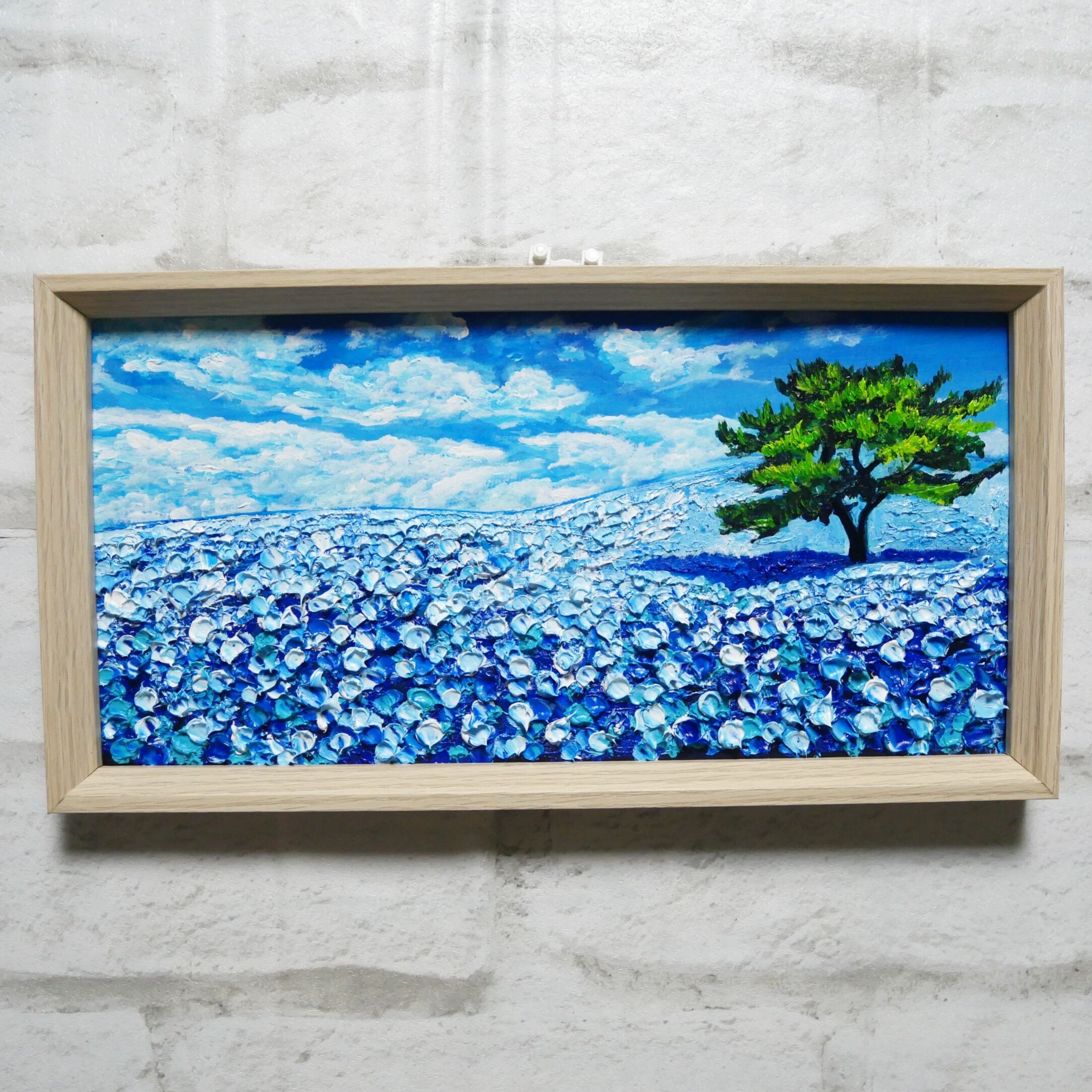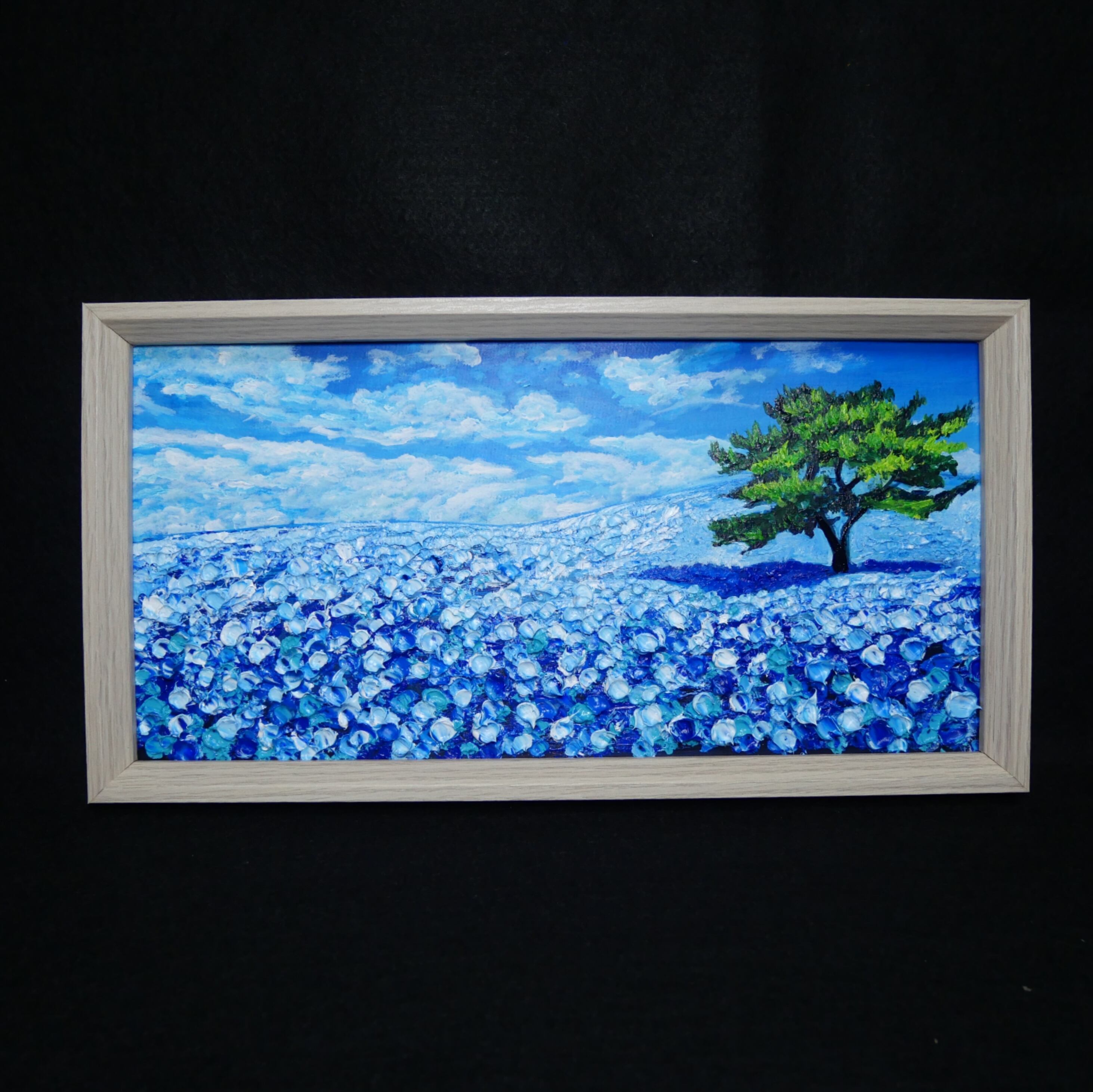 油絵 油彩 油彩画 絵 絵画 長方形ミニ絵画【ネモフィラの丘】