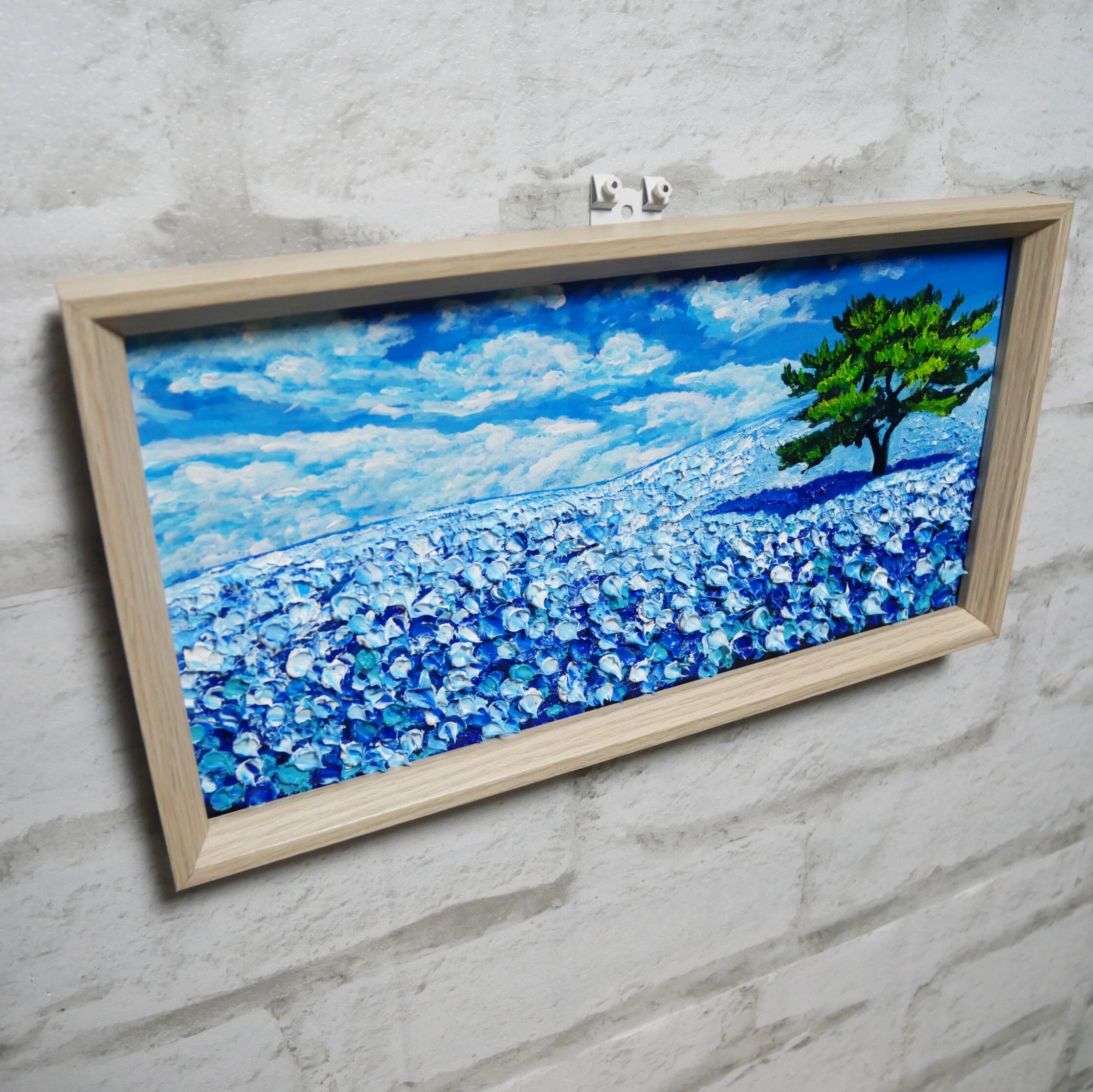 長方形ミニ絵画【ネモフィラの丘】は、美しいネモフィラの花畑を描いた贅沢な一枚です。高品質な油彩技法による手描きの絵画は、芸術性とリアリティが融合され、お客様のお部屋を一層華やかに彩ります。壁掛け用の金具も付属しており、お好きな場所に手軽に飾ることができます。また、ラッピング包装紙と袋、プチプチ、スチロールペーパー、ダンボールなどを使用し、丁寧に梱包して発送いたします。この美しい絵画は、贈り物としても最適です。母の日や記念日のプレゼントにぜひご検討ください。