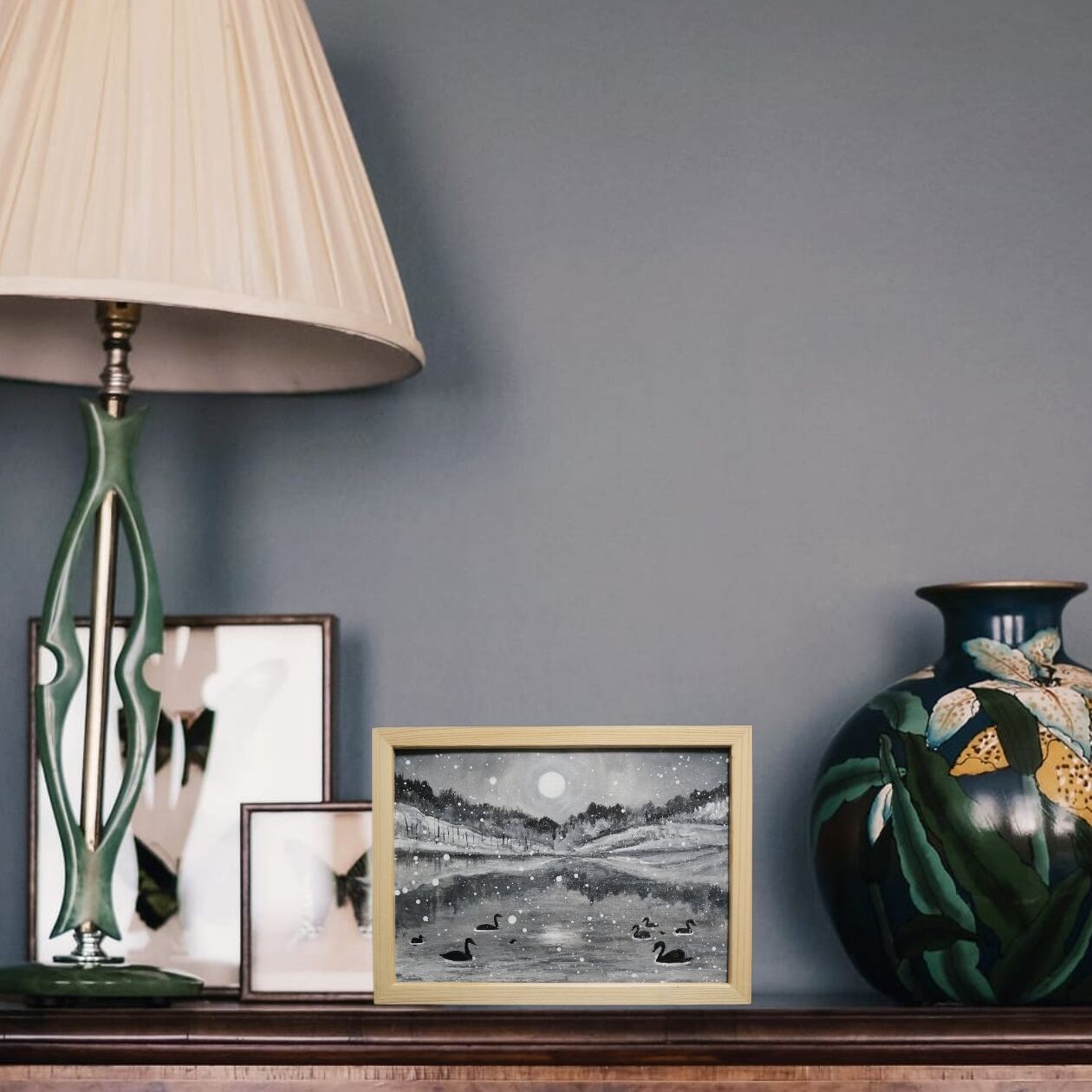 油絵 油彩 油彩画 絵画 【白黒風景のハクチョウ池】