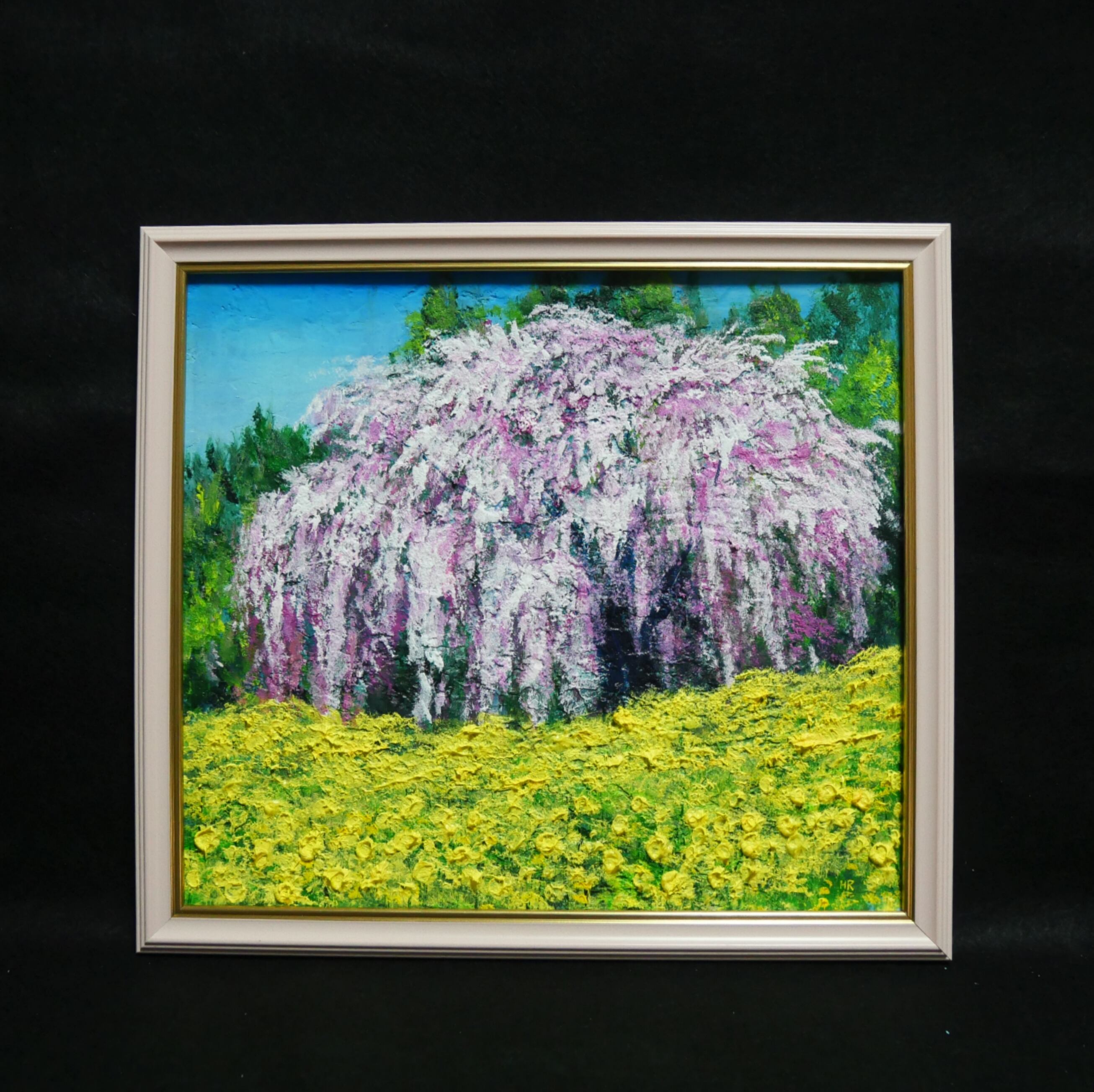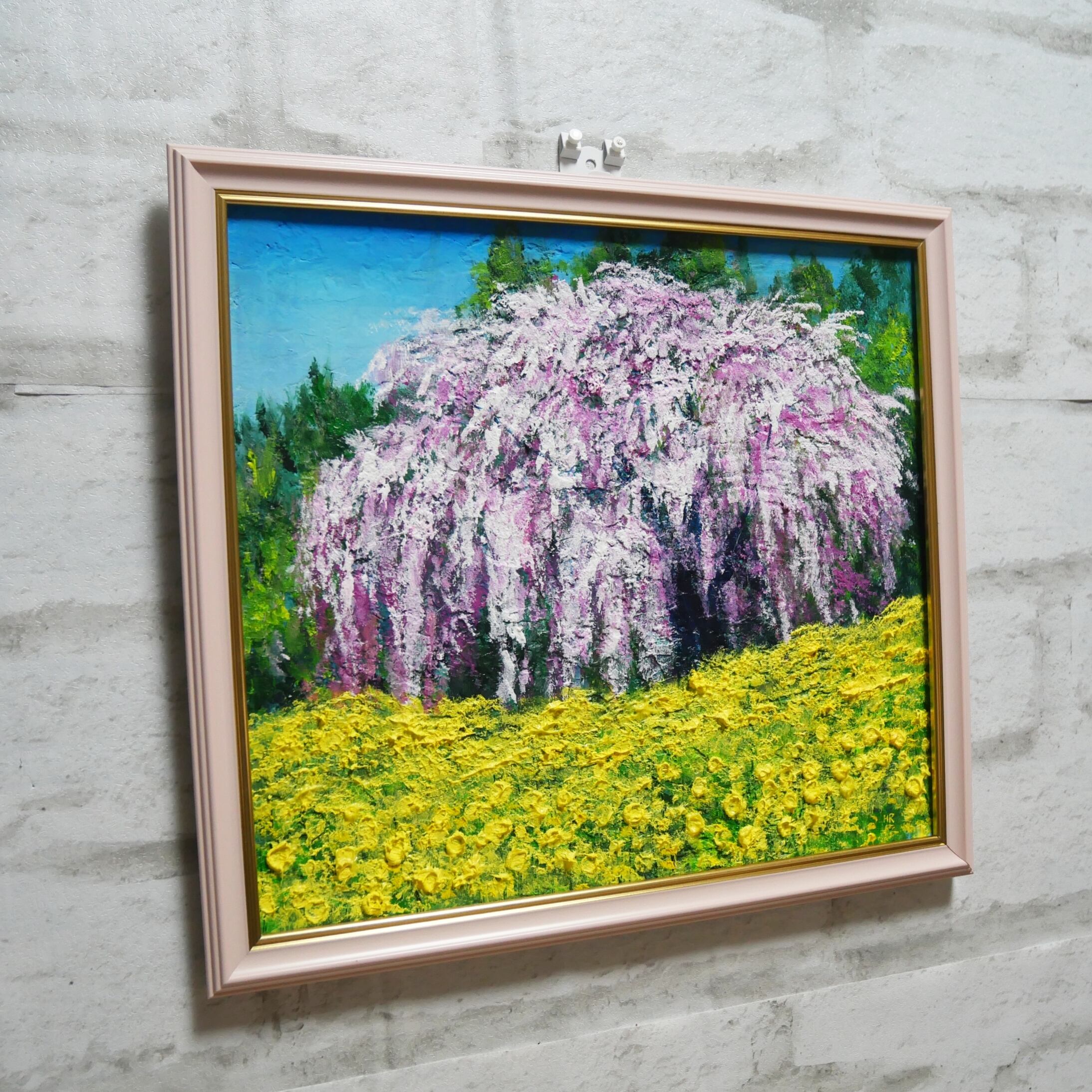 「しだれ桜」は、春の訪れを告げる咲き誇る桜と菜の花を描いた、心温まる美しい油彩作品です。この作品は、柔らかな色合いと春の柔らかな風を感じさせる瞬間を捉え、見る人に感動と心の安らぎを与えます。飾ることで、あなたの空間に春の華やかさと温もりを演出します。