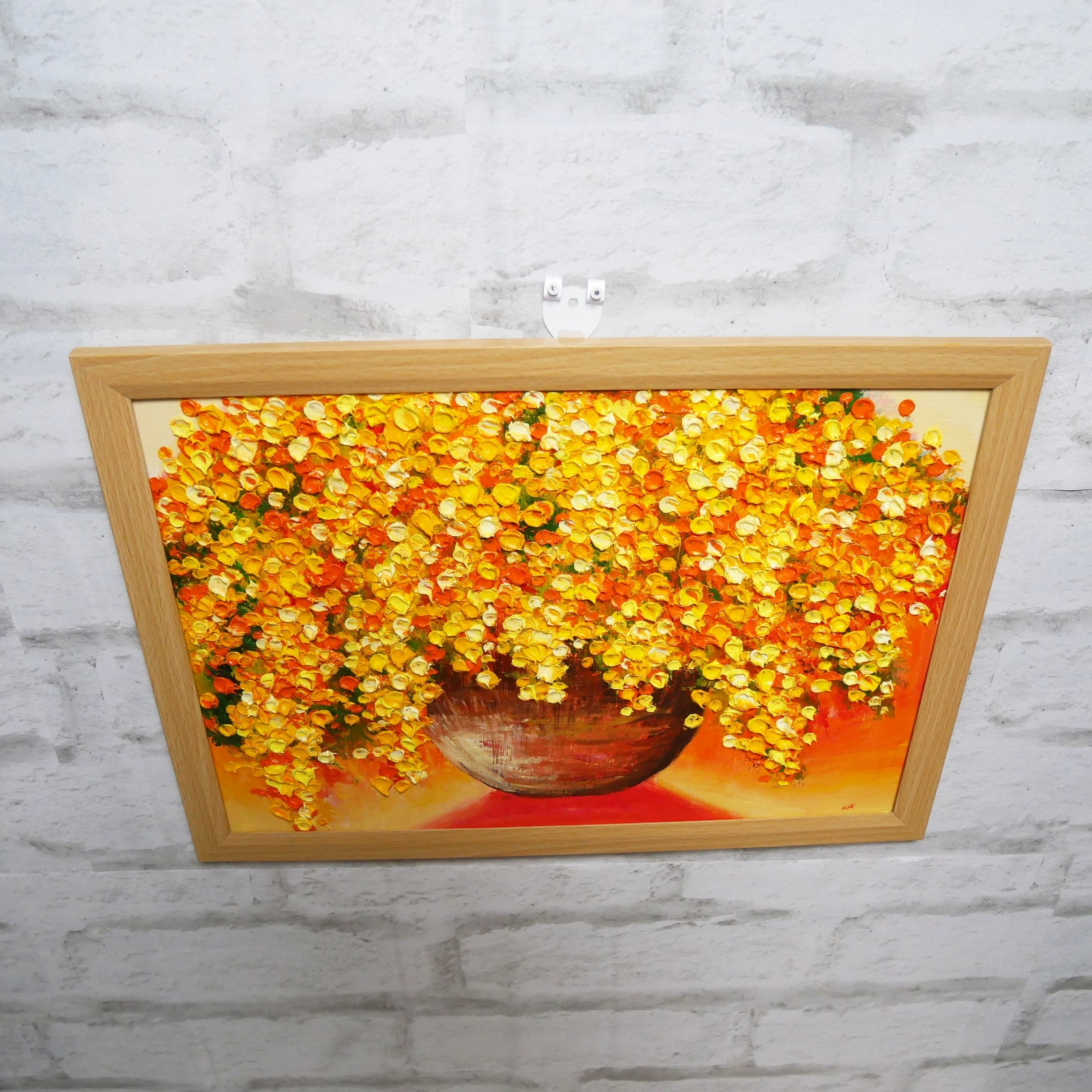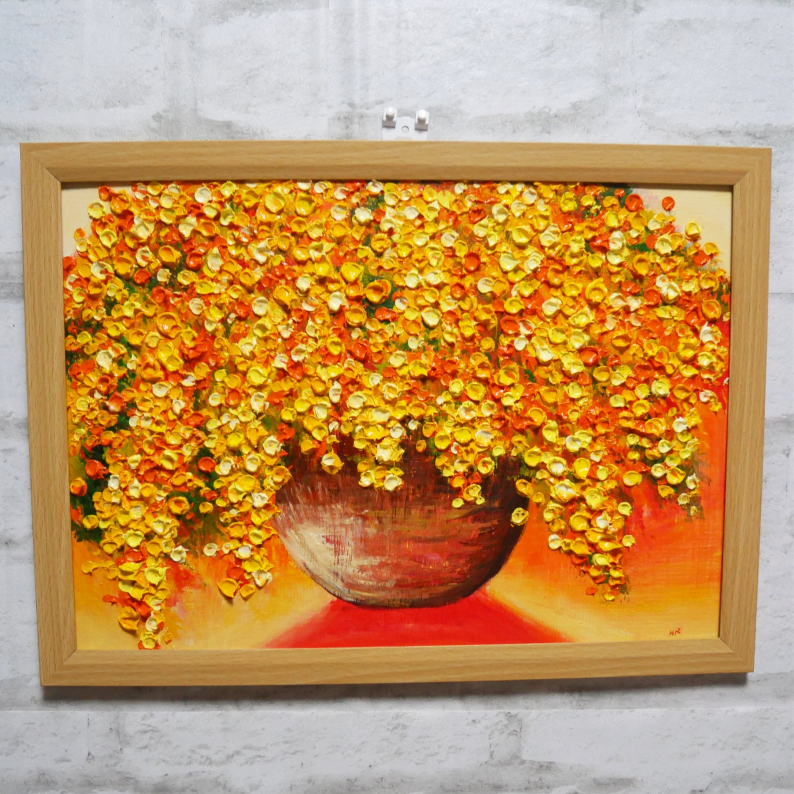 ミモザの豊かな色彩と独自の筆使いで描かれたミモザの絵画です。壁に掛けるだけで、お部屋の雰囲気をぐっと華やかに演出します。リビングや玄関、寝室など、どんな空間にもマッチする洗練されたデザイン。手描きのため、一点一点表情が異なり、それぞれの作品が特別な存在となります。ミモザの花言葉は「再び愛して」。この作品を通じて、再び愛を見つけるきっかけになるかもしれません。ぜひ、お部屋に飾って心を豊かにしてください。