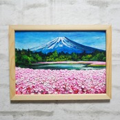 【芝桜富士】は、日本の美しい自然を描いた作品です。富士山を背景に咲く芝桜が、春の訪れを感じさせる風景が描かれています。豊かな色彩と丁寧なタッチが作品に生命を吹き込んでおり、壁に飾るだけで部屋に華やかさをプラスします。