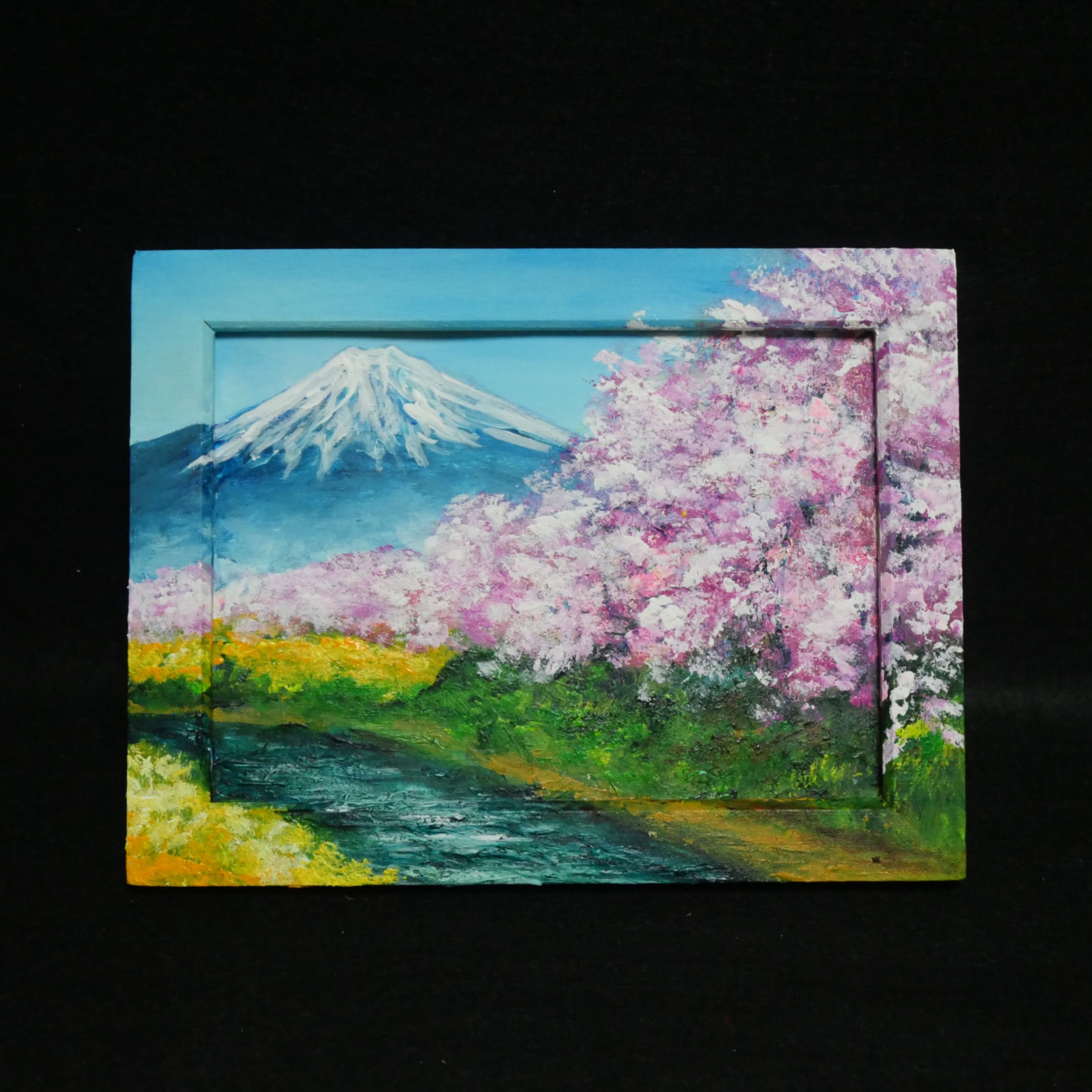 油絵 油彩 油彩画 絵 絵画 ミニ絵画【桜と富士山】