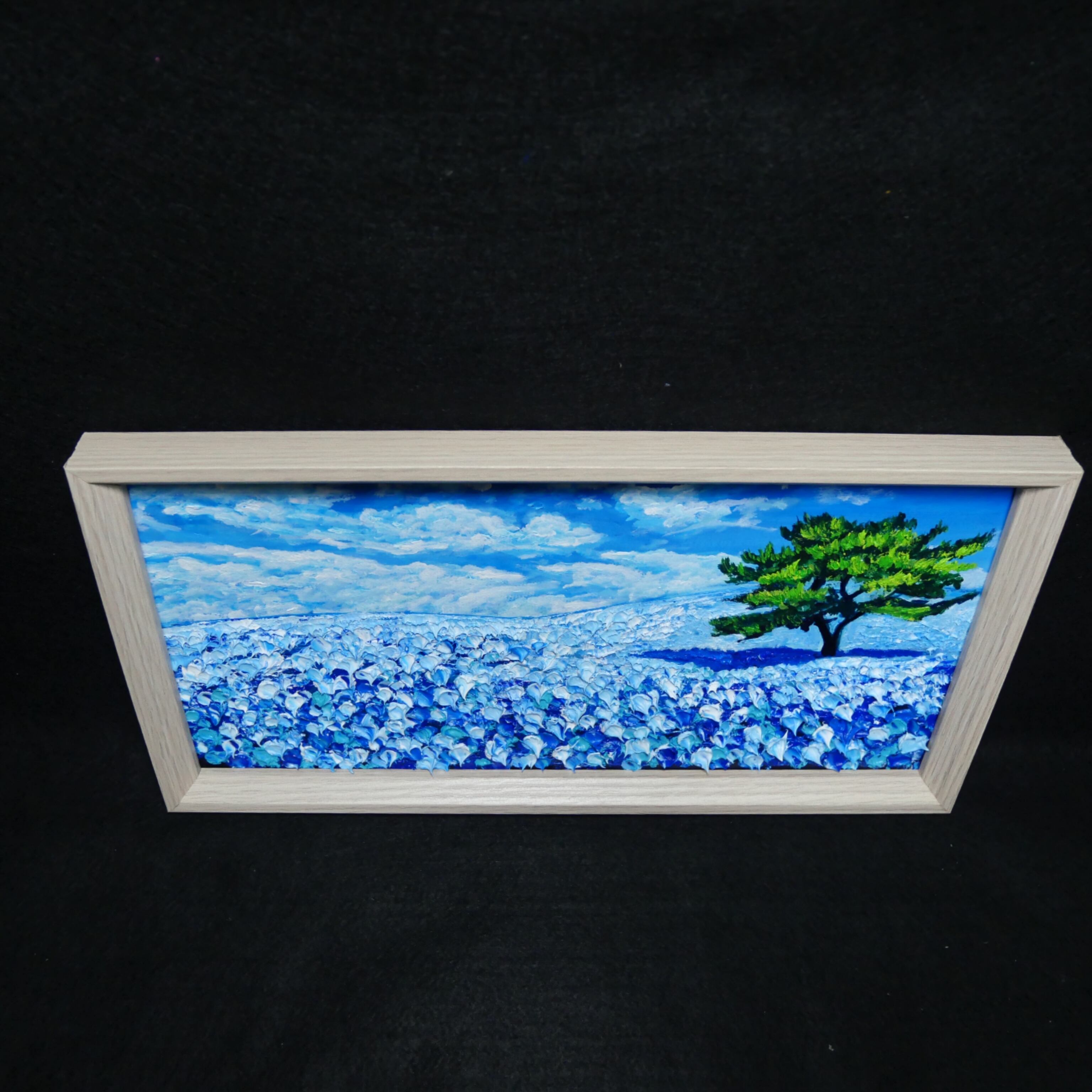 油絵 油彩 油彩画 絵 絵画 長方形ミニ絵画【ネモフィラの丘】