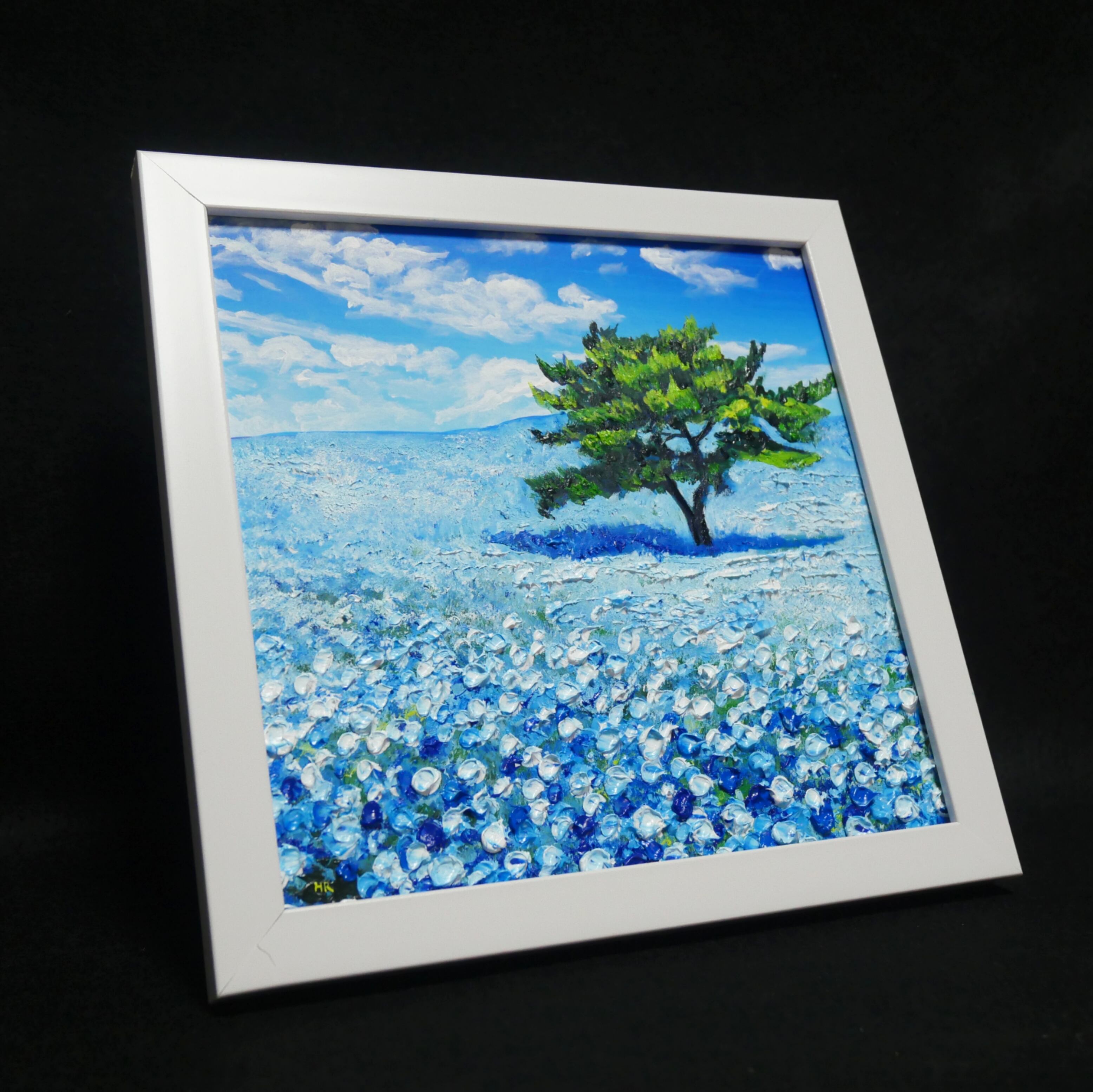 青空とネモフィラの優しい色合いが心を和ませ、お部屋にやわらかな光景を演出します。贈り物やインテリアに最適です。小さいながらも存在感は抜群で、見るたびに新しい発見があります。お客様の日常を彩る小さな幸せをお届けします。
