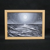 満月と星空、海というシンボリックなモチーフが織り成す絶妙なバランスは、見る者の心を奪い、深い感動を与えます。この作品をご自宅やオフィスに飾れば、いつでもその美しい世界に思いを馳せることができるでしょう。贈り物としても最適な作品ですので、大切な人へのプレゼントにも喜ばれること間違いありません。