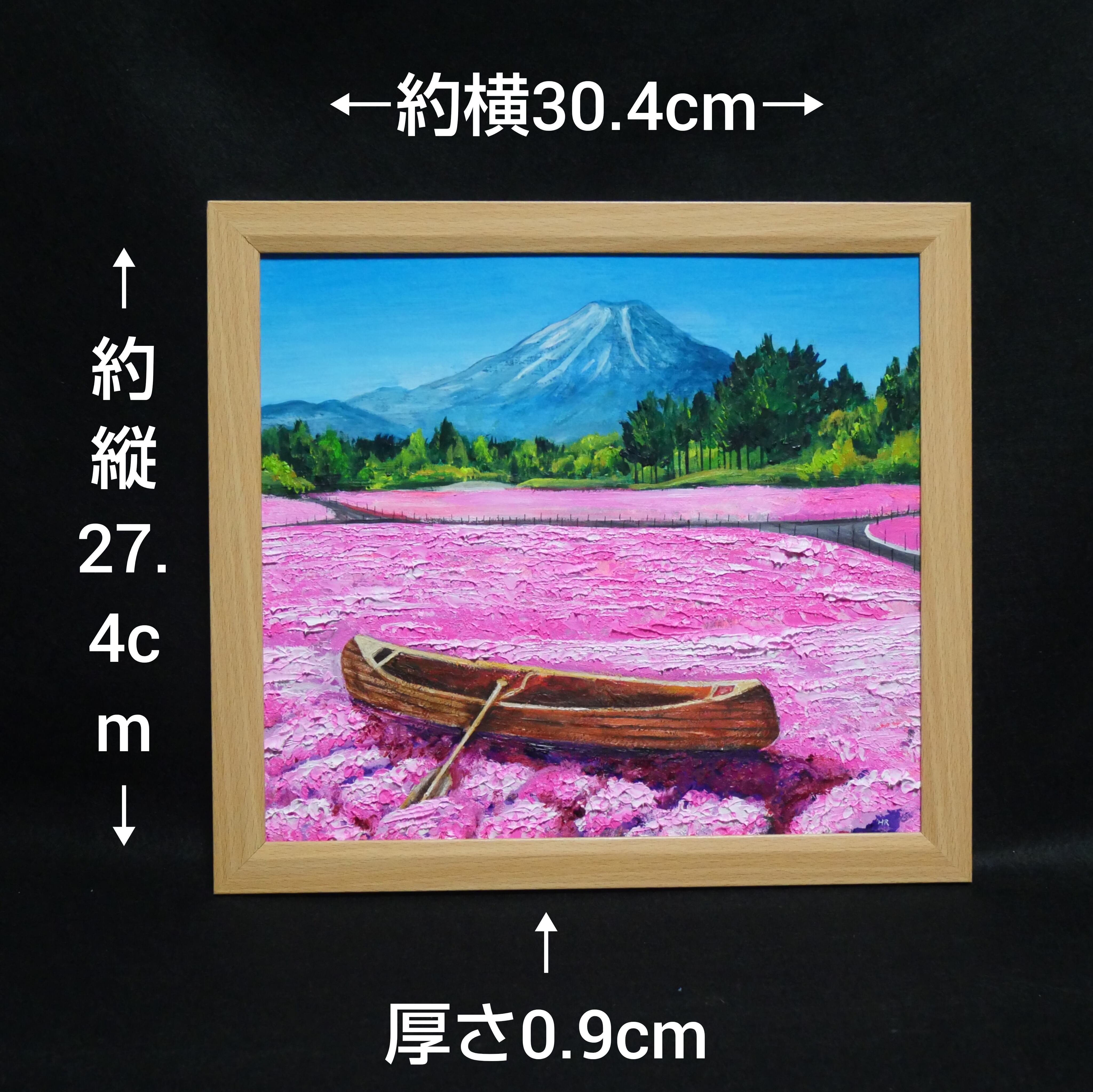 この作品は、1つ1つ手作業で制作された油彩画で、豊かな色彩や筆致が魅力です。絵の中に入り込んで、芝桜の香りや小舟の漕ぎ出す音が感じられるかのようなリアリティがあります。部屋のインテリアとして、また贈り物としても喜ばれること間違いありません。