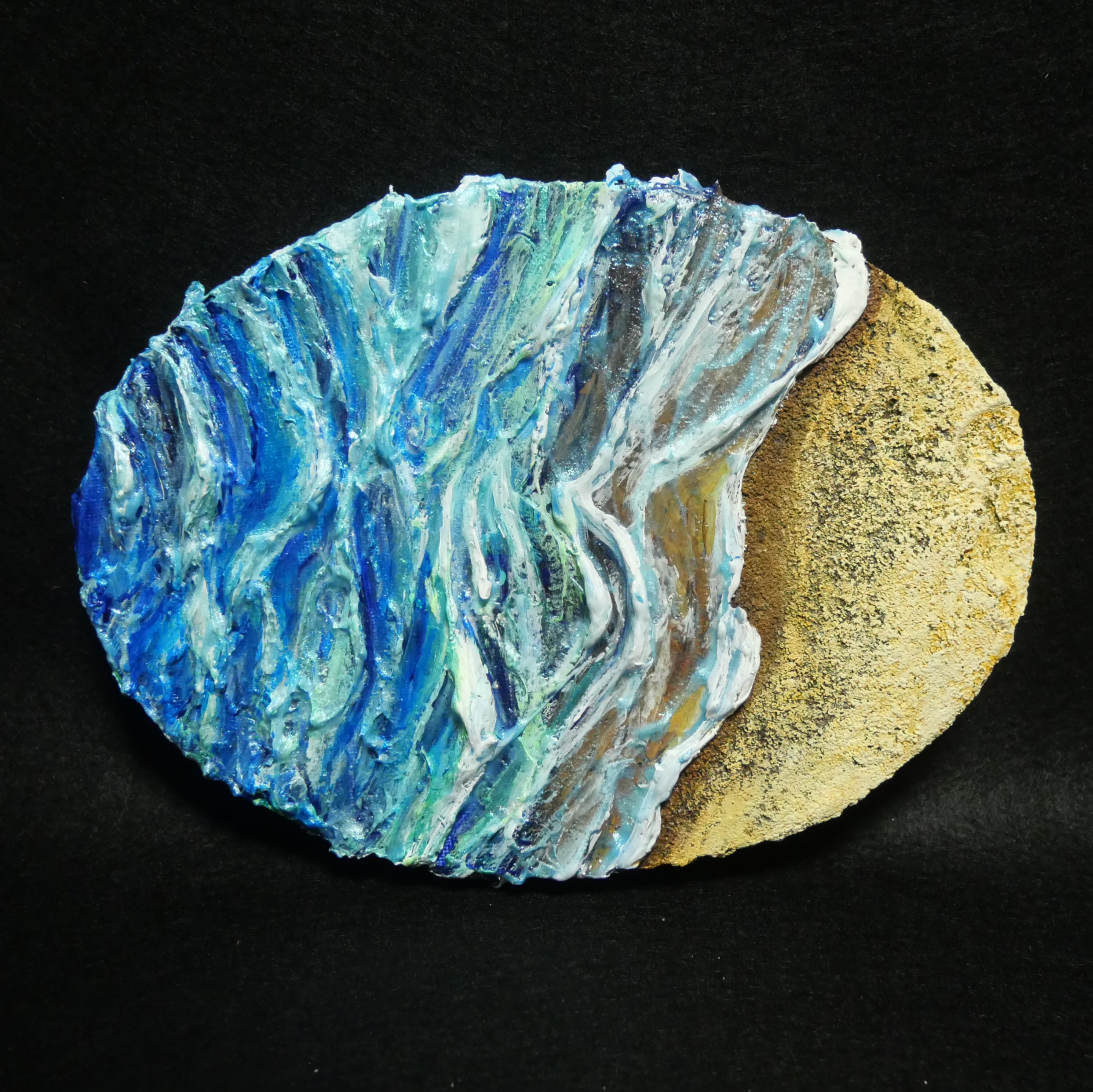 油絵 油彩 油彩画 絵画 絵 楕円型張りキャンバス【砂浜の波】