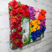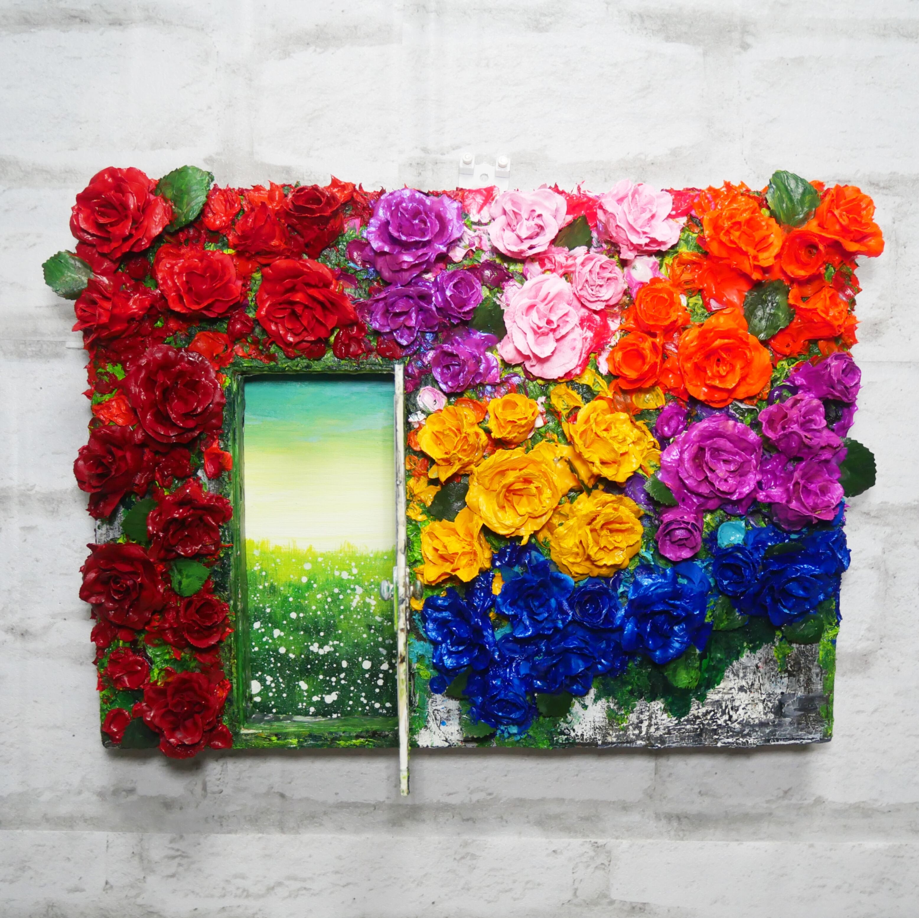アーティストは、自身の想いや感情を込めて一筆一筆丹念に描き上げました。その情熱が作品から溢れ出ており、見る者を引き込む力を持っています。壁や扉などの古びた背景に、鮮やかな薔薇が映える構図は、どんな空間にも一際美しさを添えてくれることでしょう。