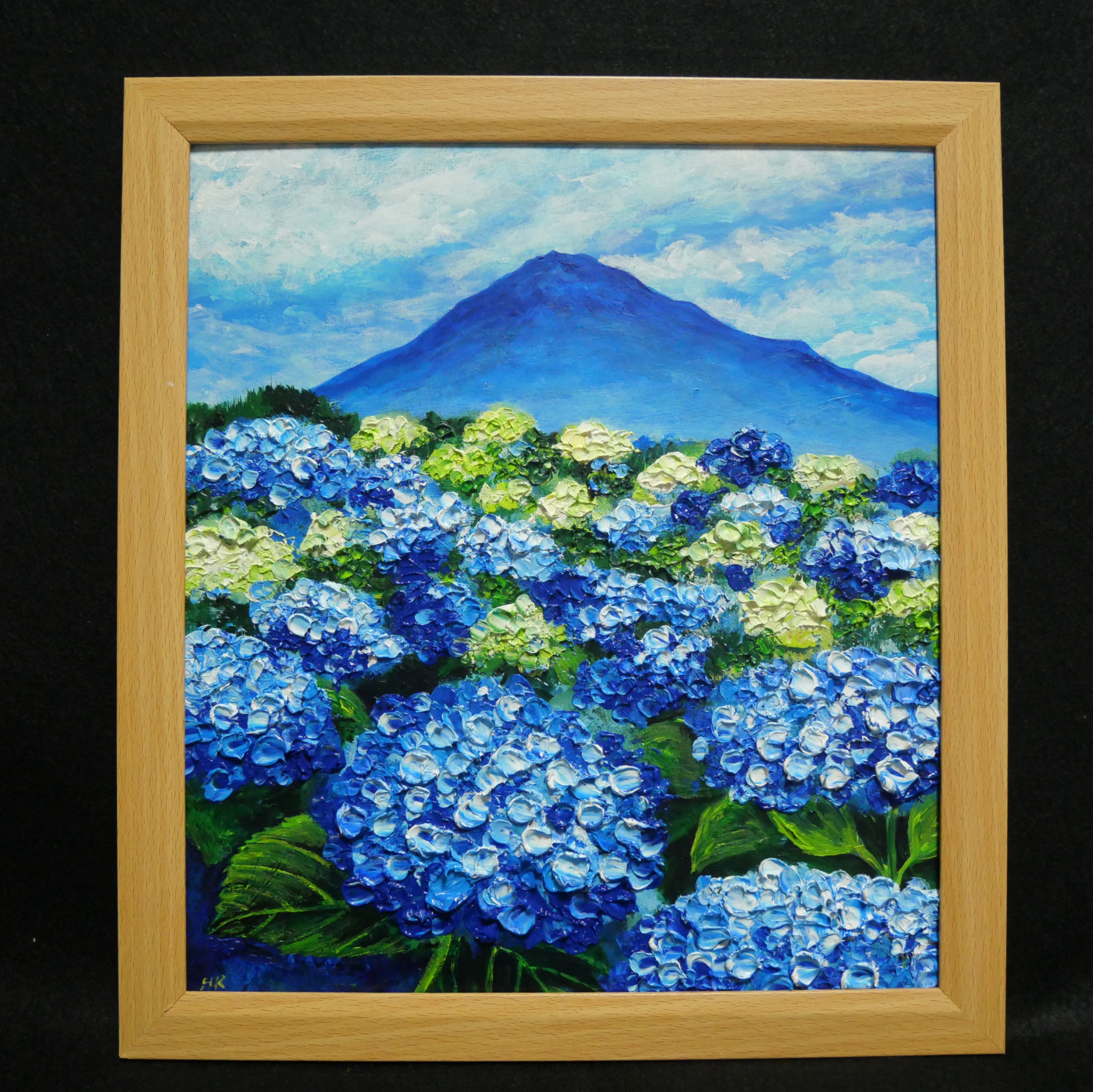 油絵 油彩 油彩画 絵画 絵【紫陽花と富士山】