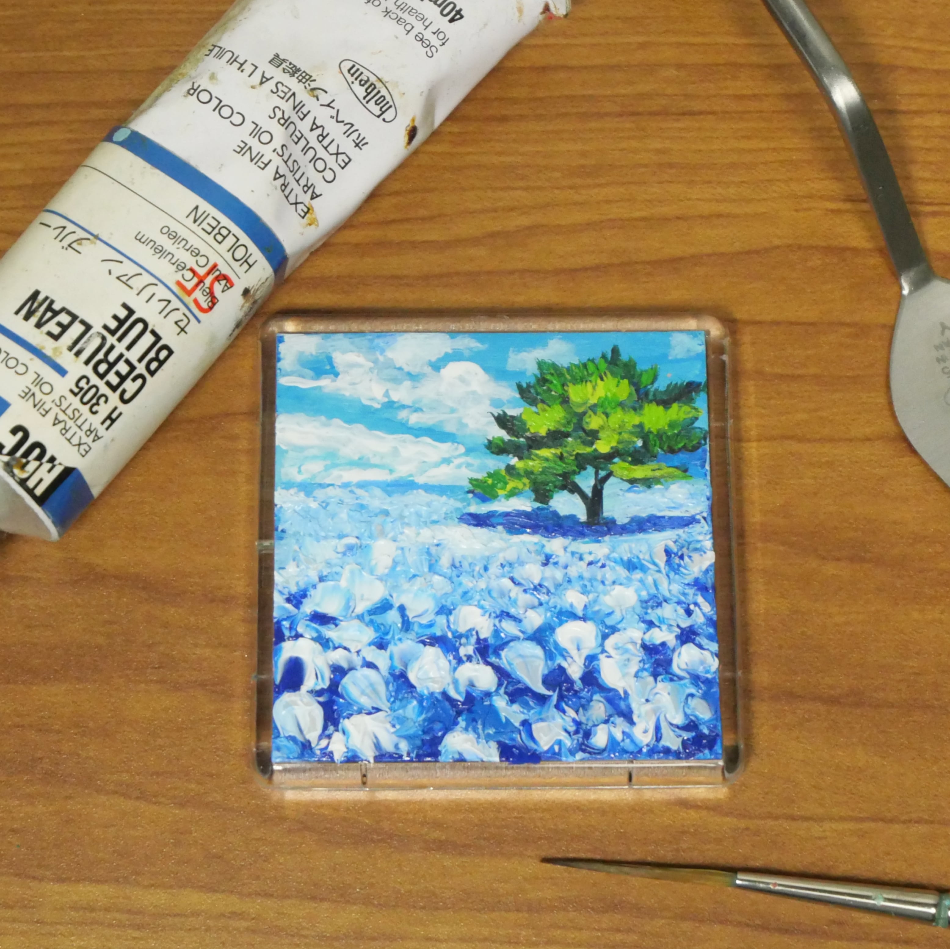 作品名:「ネモフィラの丘」マグネット油彩画