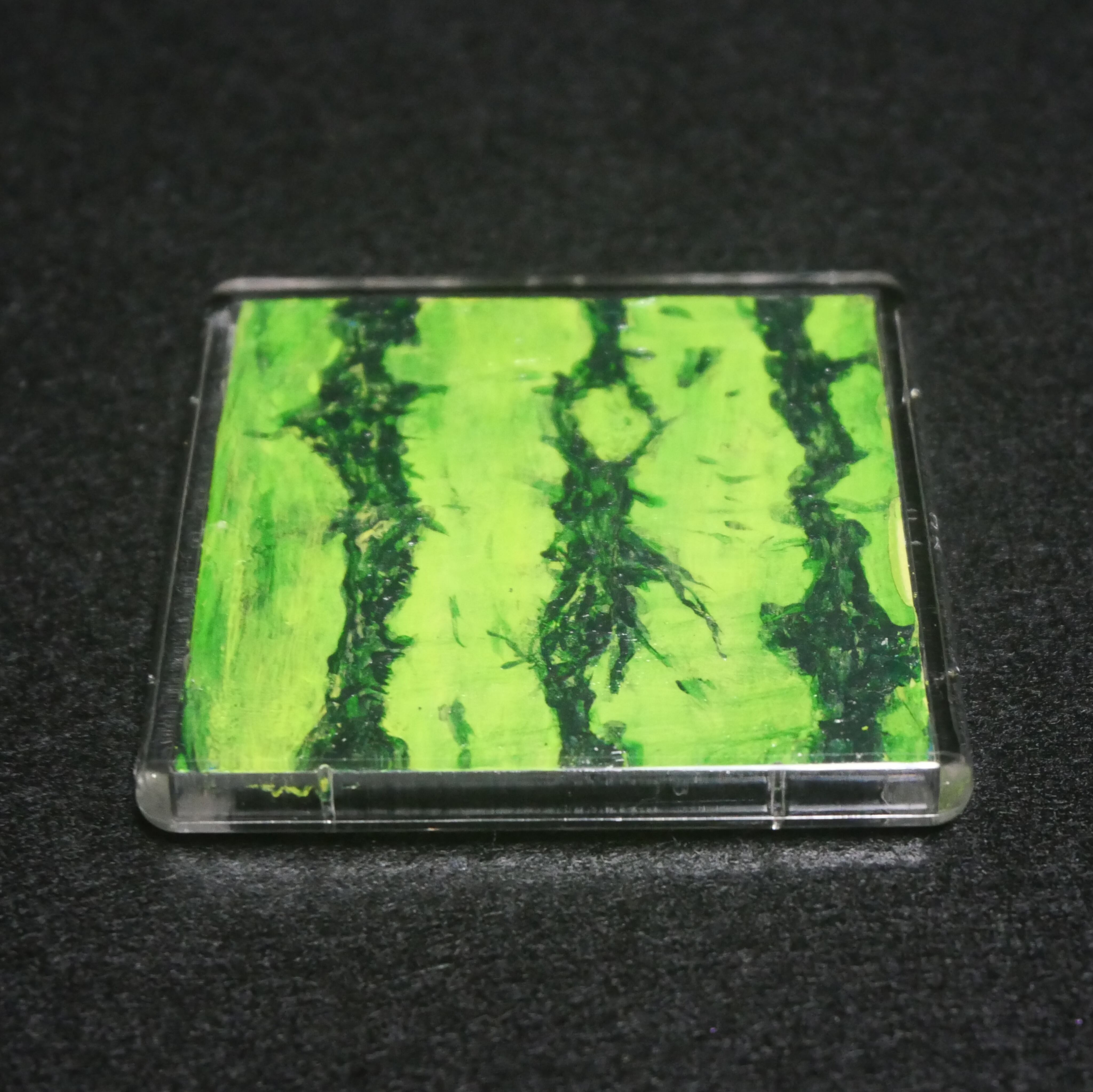 四角いスイカをイメージした油絵マグネット絵画。手のひらサイズの小さなアートが、冷蔵庫やホワイトボードに彩りを添えます。丸いスイカにはない斬新なデザインが、お部屋をひと味違った雰囲気に変えてくれること間違いなしです。