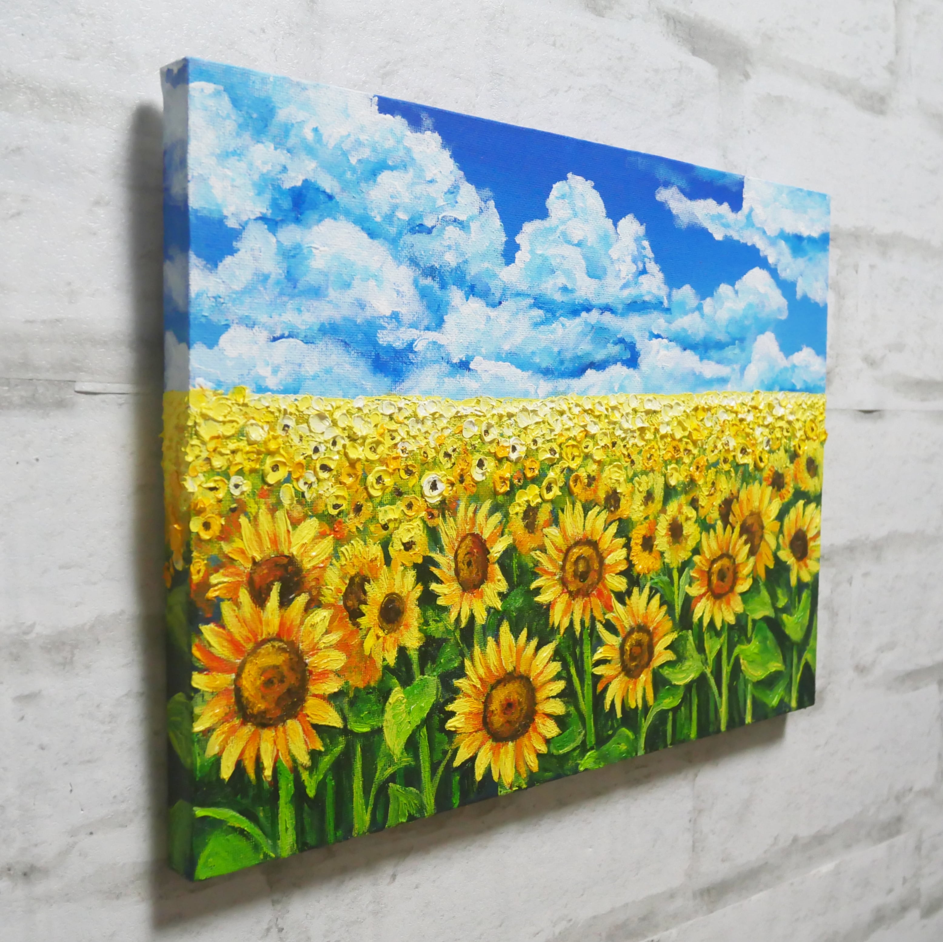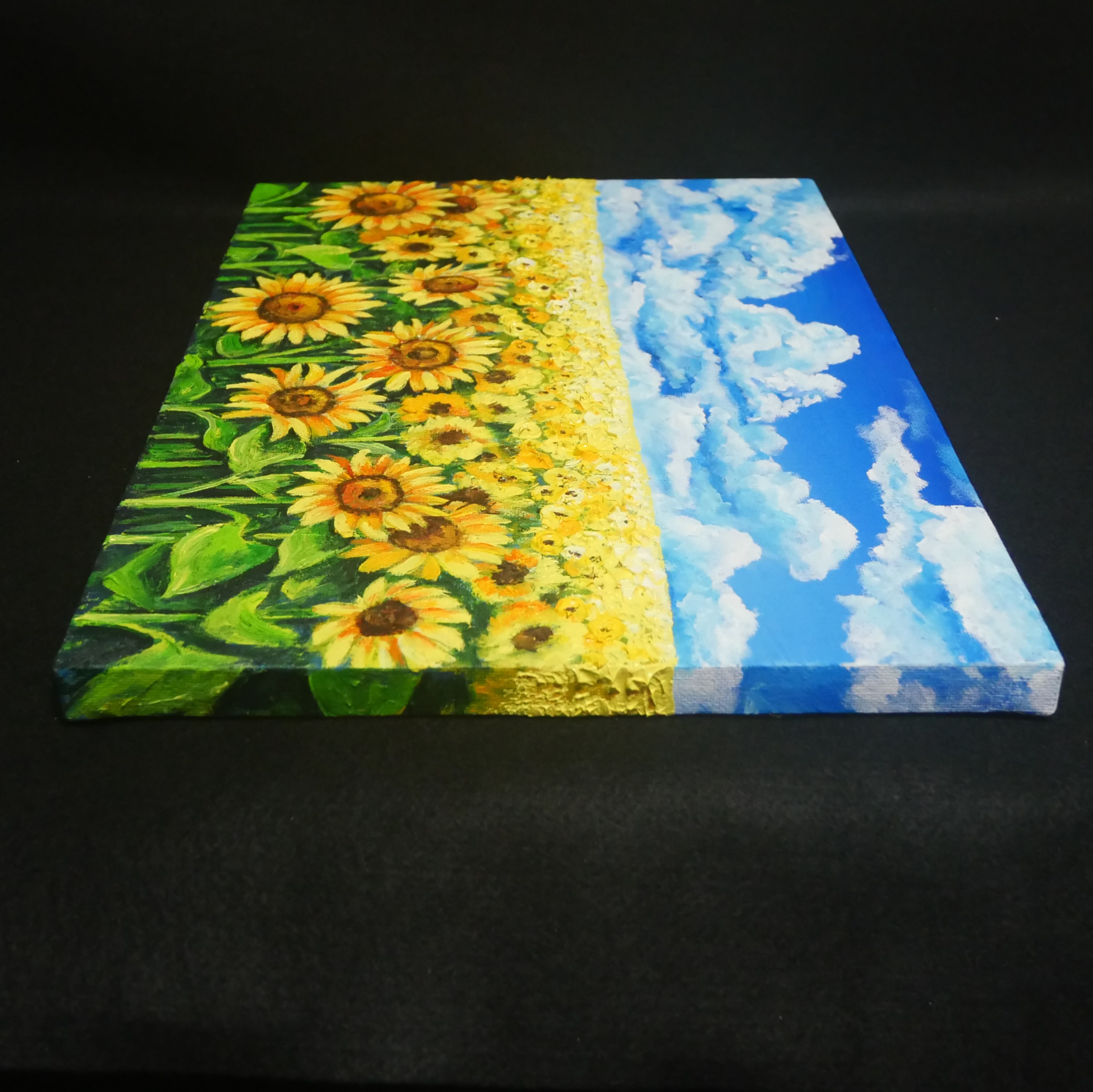 涼やかな夏の日差しをひまわり畑の中で感じる、『夏の向日葵畑』。ホルベインの油絵具を贅沢に使い、キャンバスに描かれたこの作品は、まるで自然そのものが部屋に訪れたようなリアリティを感じさせます。美しいひまわりと広がる青空、静かに流れる夏の雲。そんな風景をお客様のお部屋に飾って、日々の暮らしに癒しと豊かな色彩をプラスしてみませんか。