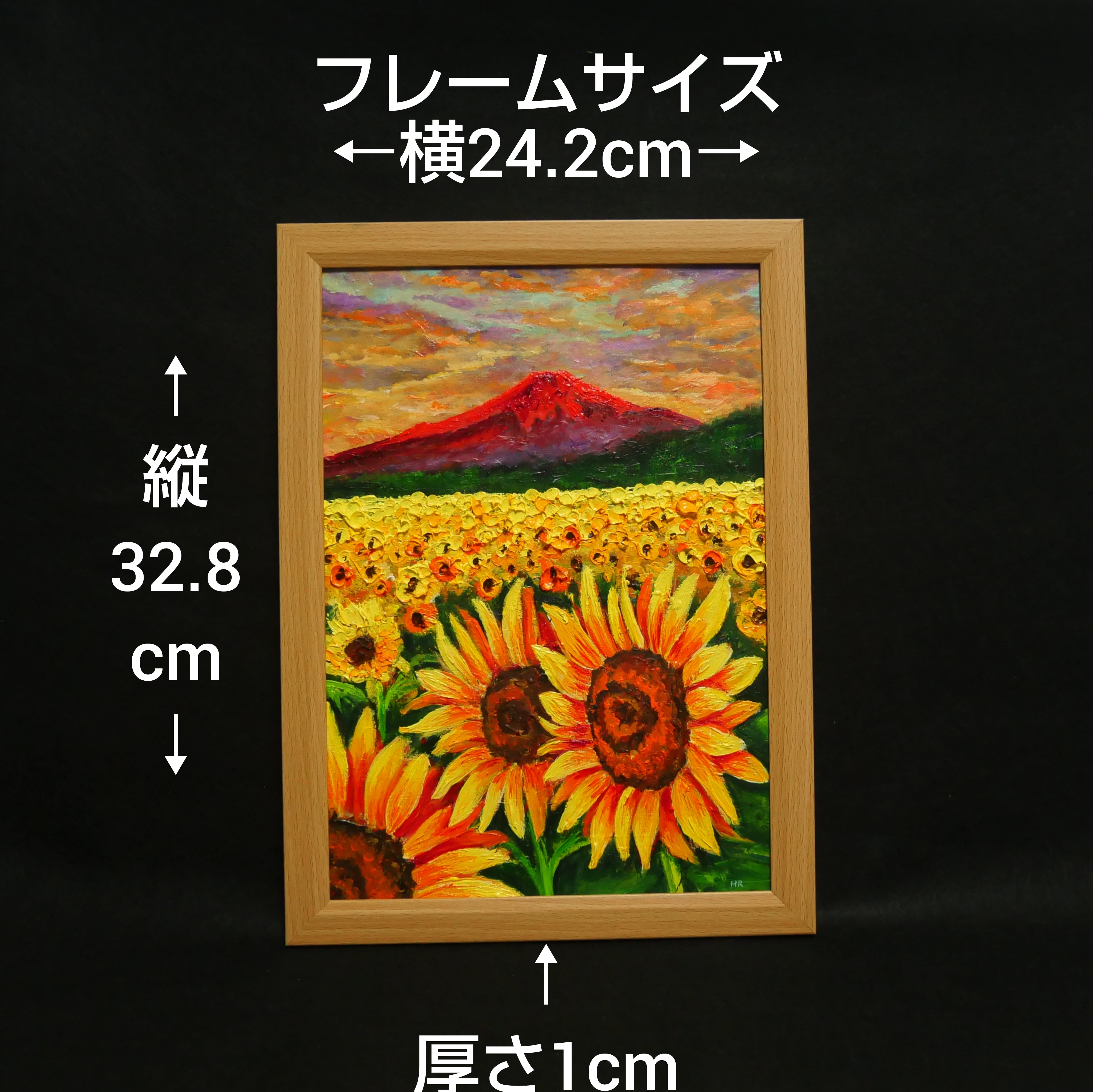 この作品に込められたアーティストの情熱と想いが、お客様にも心を満たしてくれることでしょう。夕陽に照らされる赤富士や、夕焼けに染まるひまわり畑を眺めながら、日々の疲れも癒されること間違いなし。お客様の日常に、幸せと癒しを運んできてくれるはずです。