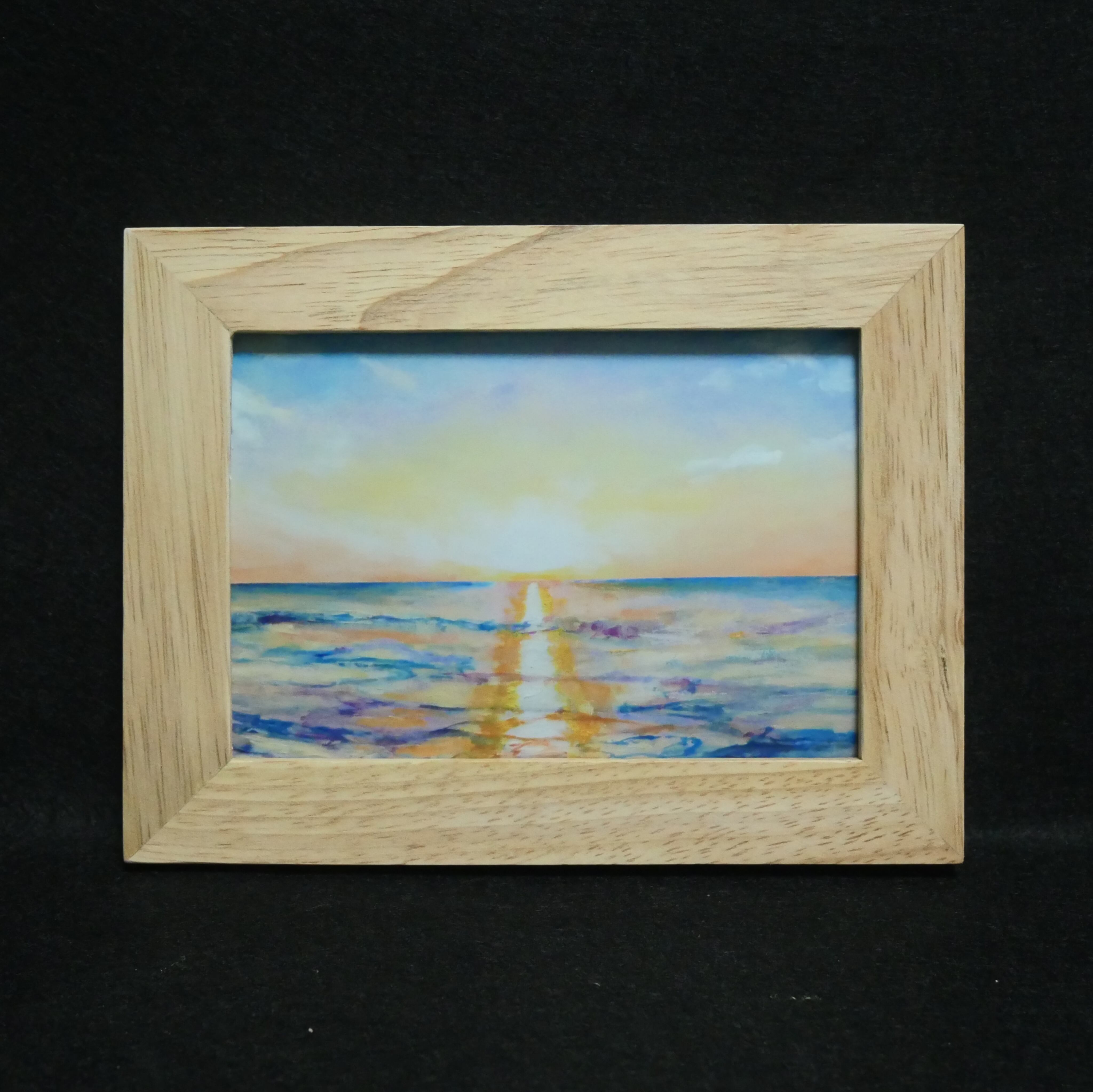 ポスターカード【朝日に輝く海】は、朝日が海面に映し出す美しい風景を写真に収めた作品です。Lサイズなので存在感があり、お部屋のインテリアとしても最適です。全面フチなし印刷により、写真の美しさを最大限に引き出しています。ナチュラルフレームに入れられたこのポスターカードは、立てかけるだけでなく、壁に飾ることもできます。海や太陽、光をモチーフとしたこの作品は、朝の清々しい気持ちを届けてくれること間違いなし。ラッピング付きなので、贈り物としても喜ばれること間違いありません。