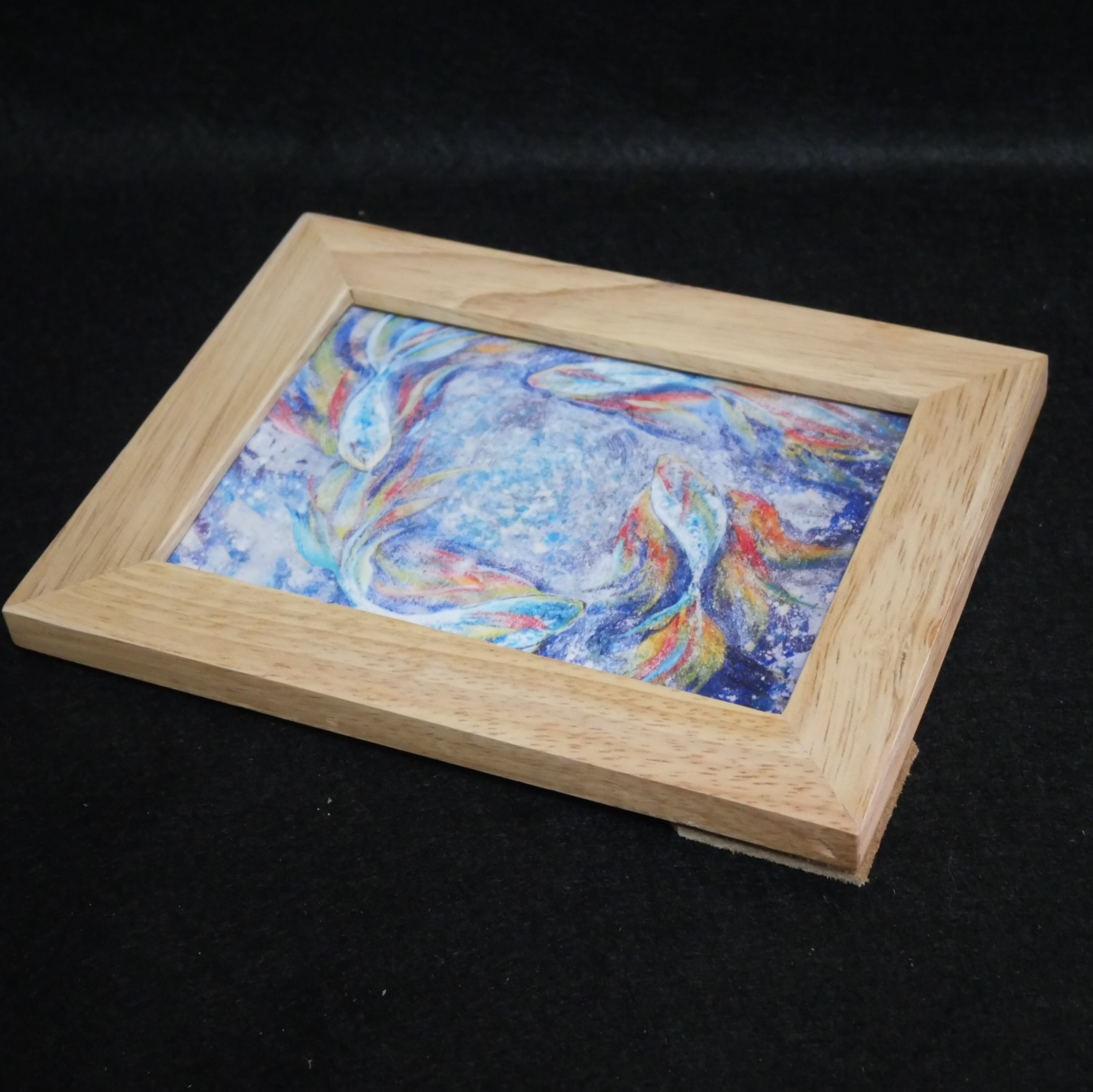 こちらは、ポスターカード【回転】です。魚や水、熱帯魚をモチーフにした美しい写真が、フルカラーで表現されています。全面フチなし印刷により、写真全体が美しく映え、Lサイズ(89×127mm)のポスターカードに仕上げました。 ナチュラルフレーム付きで、サイズは12.0×16.1cm、厚さ1cm。立て掛けや壁掛けが可能で、お部屋のインテリアとしても素敵です。また、ラッピングも付いており、プレゼントとしても最適です。 この美しいポスターカードには、回転というタイトルがつけられています。魚たちが美しく舞い踊る様子が、お客様のお部屋を彩り豊かにしてくれることでしょう。 是非、このポスターカードで美しいアートをお楽しみください。