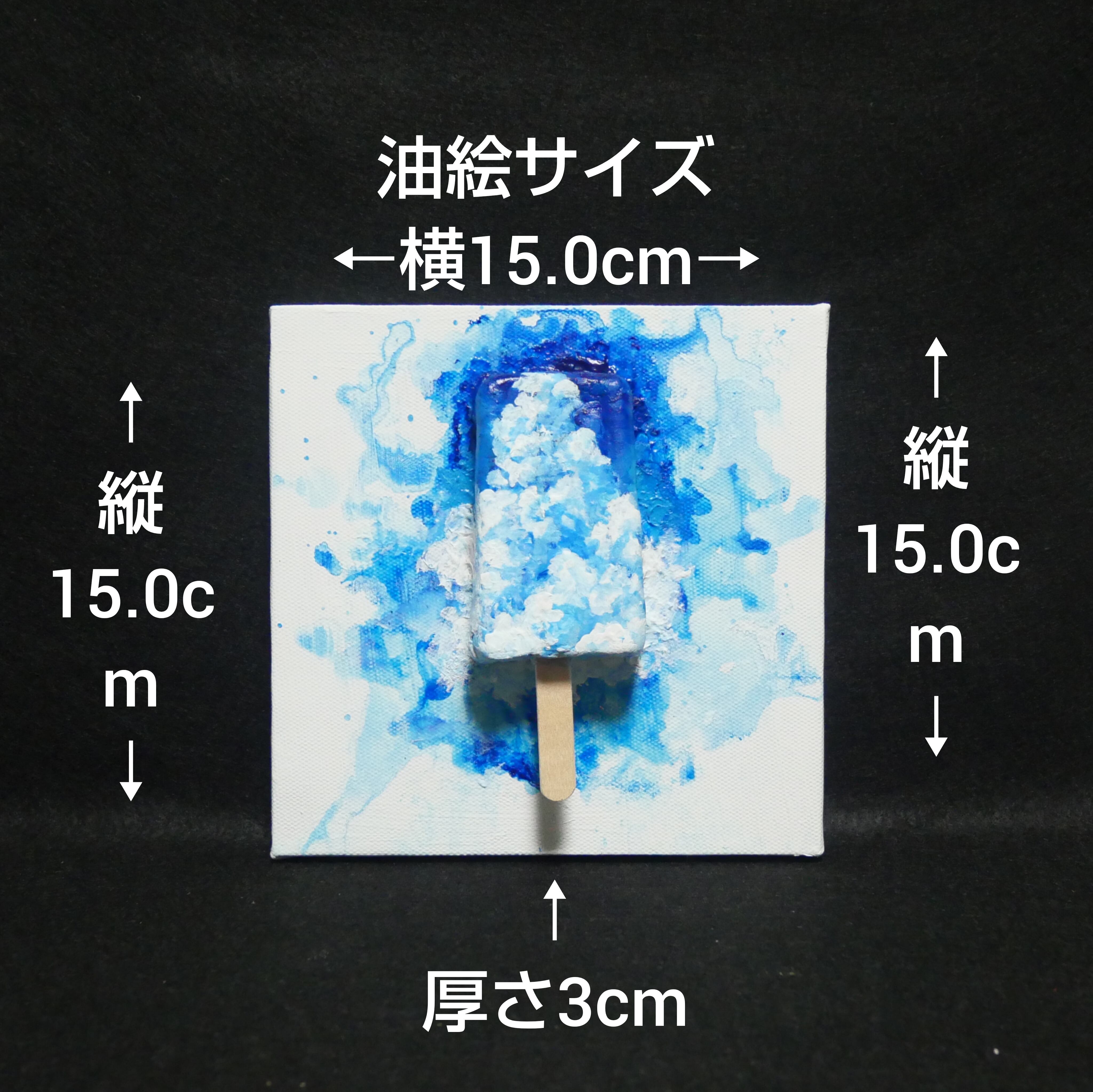油絵「青空の雲の解けないアイスキャンディー」は、夏空に浮かぶ可愛らしいアイスキャンディーをモチーフにした作品です。 紙粘土と油絵の具を組み合わせて、アイスキャンディー型を使用してリアルな表現を施しています。 鮮やかな青空とふんわりと漂う雲、アイスキャンディーが解けないようなリアルな表現は、夏の爽やかな風景を彷彿とさせます。部屋のインテリアとしても飾るのに最適なアート作品です。