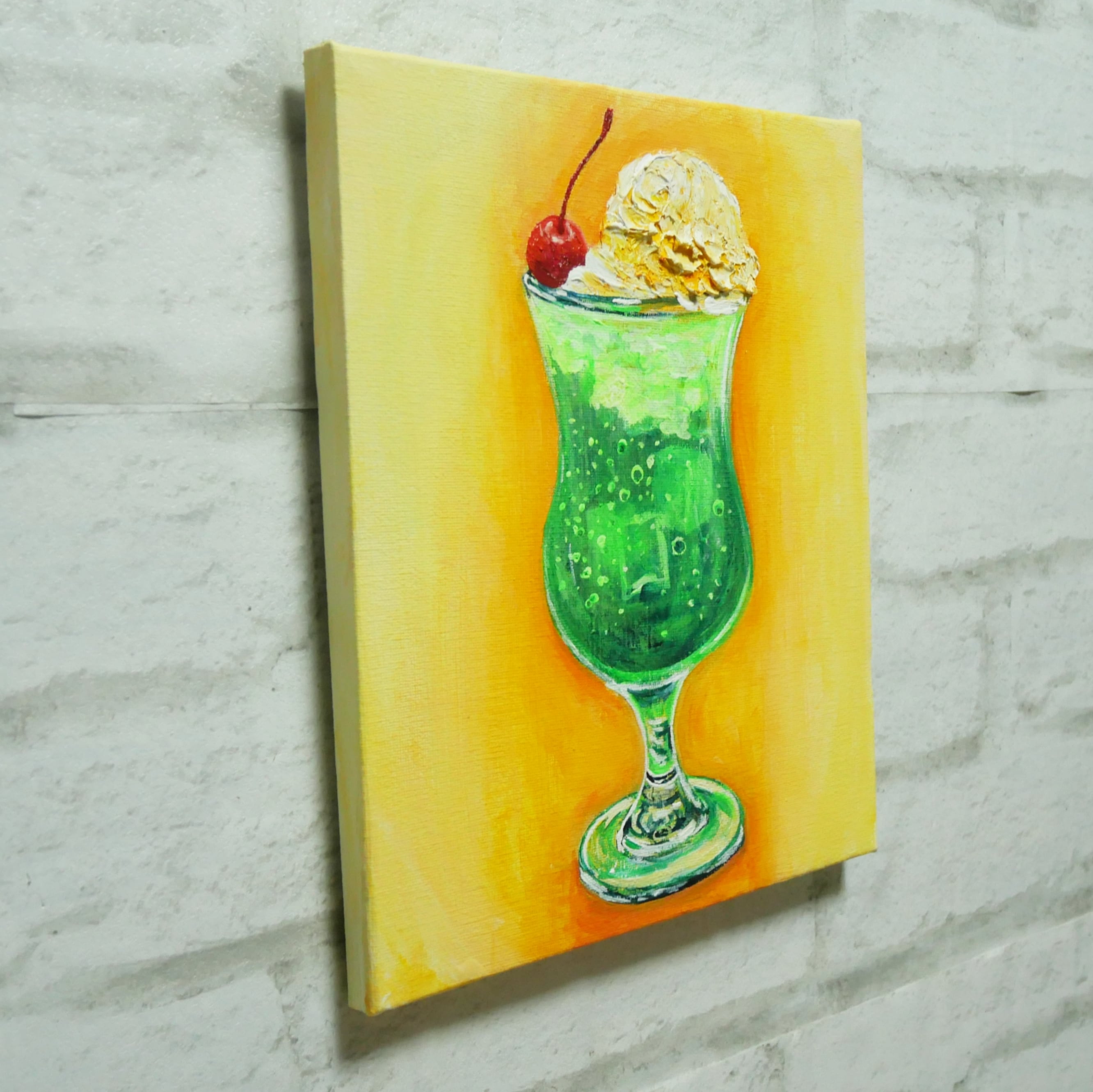 このクリームソーダの絵画がお客様の暑い夏をひと味違うものにしてくれるでしょう。部屋のインテリアとして、また贈り物としても喜ばれること間違いありません。ぜひ、お客様の空間にこの涼やかな作品を飾ってみてください。