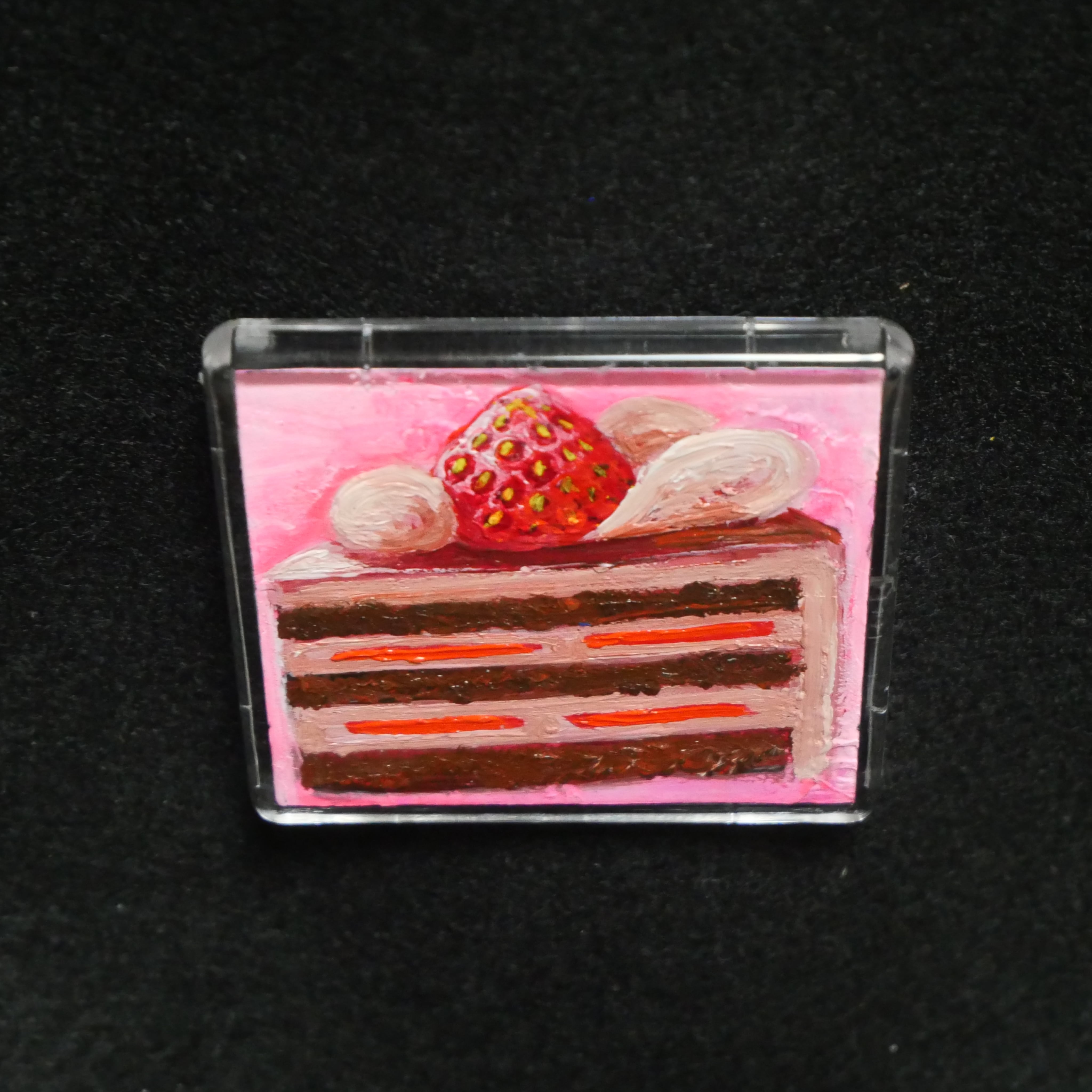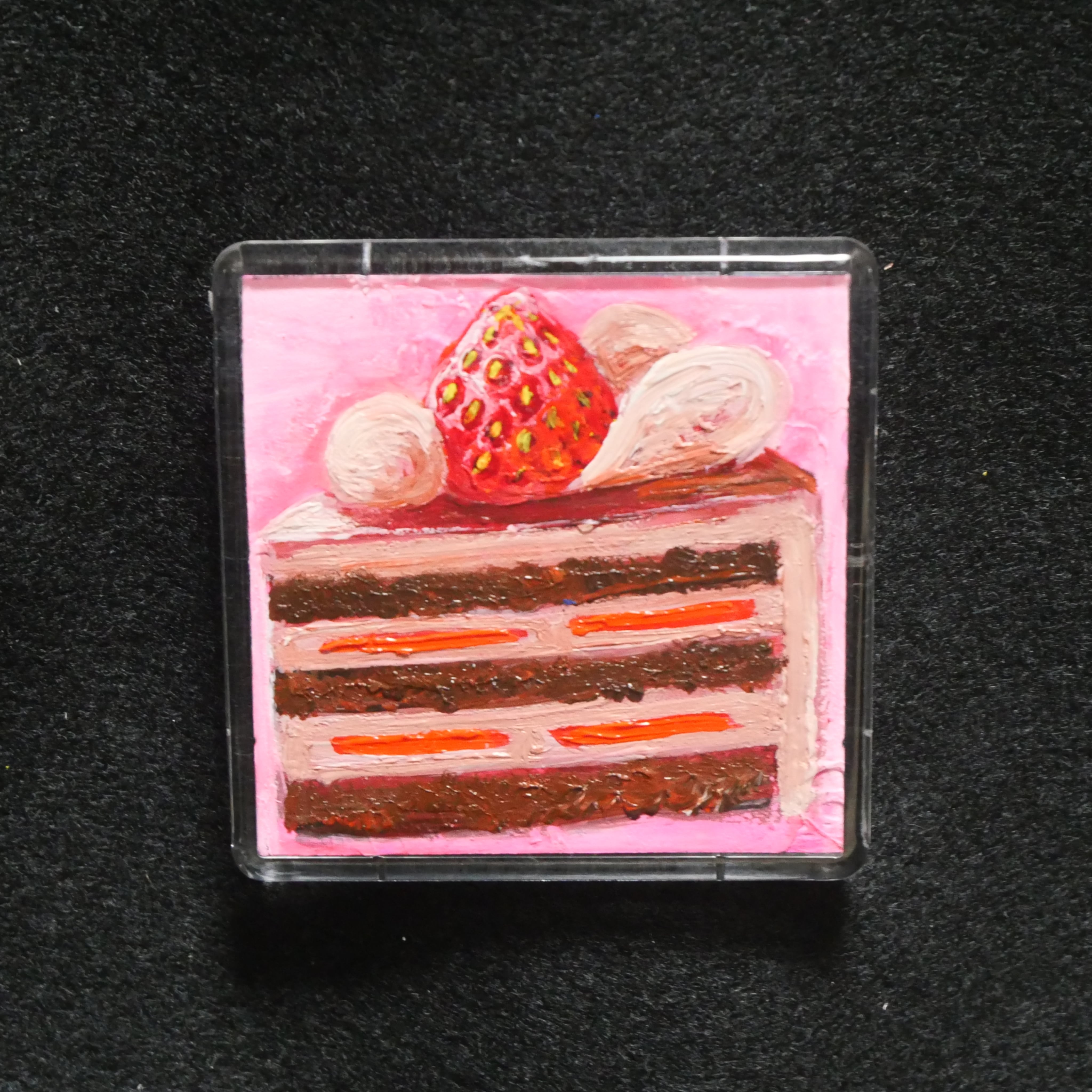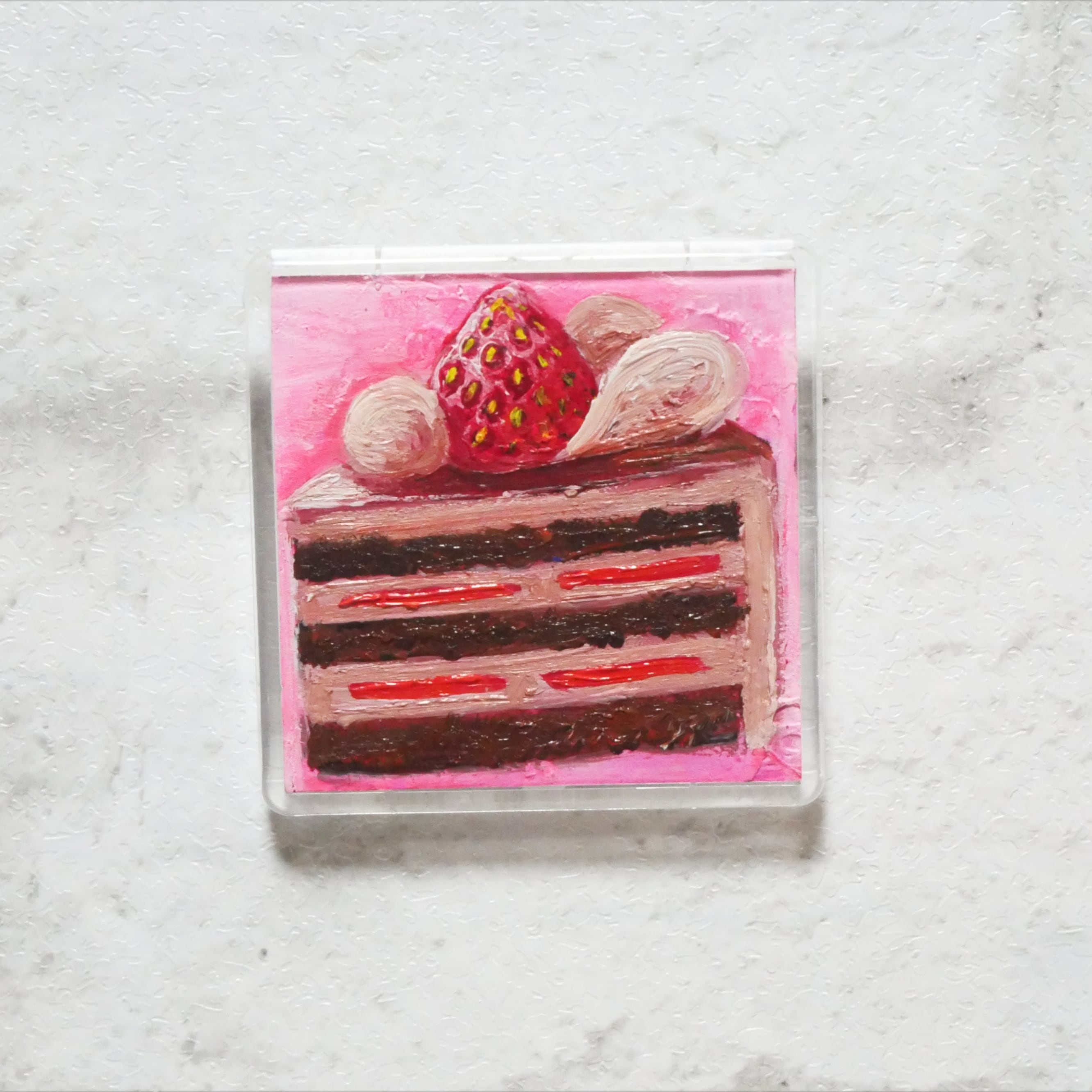 油絵 マグネット絵画【苺の生チョコショート】は、油絵の具を使用した美しいアート作品です。マグネットサイズなので、冷蔵庫やホワイトボードなどのスペースに取り付けることができ、お部屋のインテリアとしてお楽しみいただけます。苺の生チョコショートをモチーフにした心温まるデザインは、見るだけで和みます。 生チョコショートや苺、チョコレートなど、甘いテーマが詰まったこの作品は、お部屋を華やかに演出し、日常をちょっと特別なものにしてくれます。油絵の技法によって描かれた繊細なタッチと色彩は、一つ一つ手作業で制作されています。 このマグネット絵画は、贈り物や自分用にも最適です。心のこもったプレゼントとして喜ばれること間違いなし。大切な日常を彩るアート作品として、ぜひお手に取ってご覧ください。