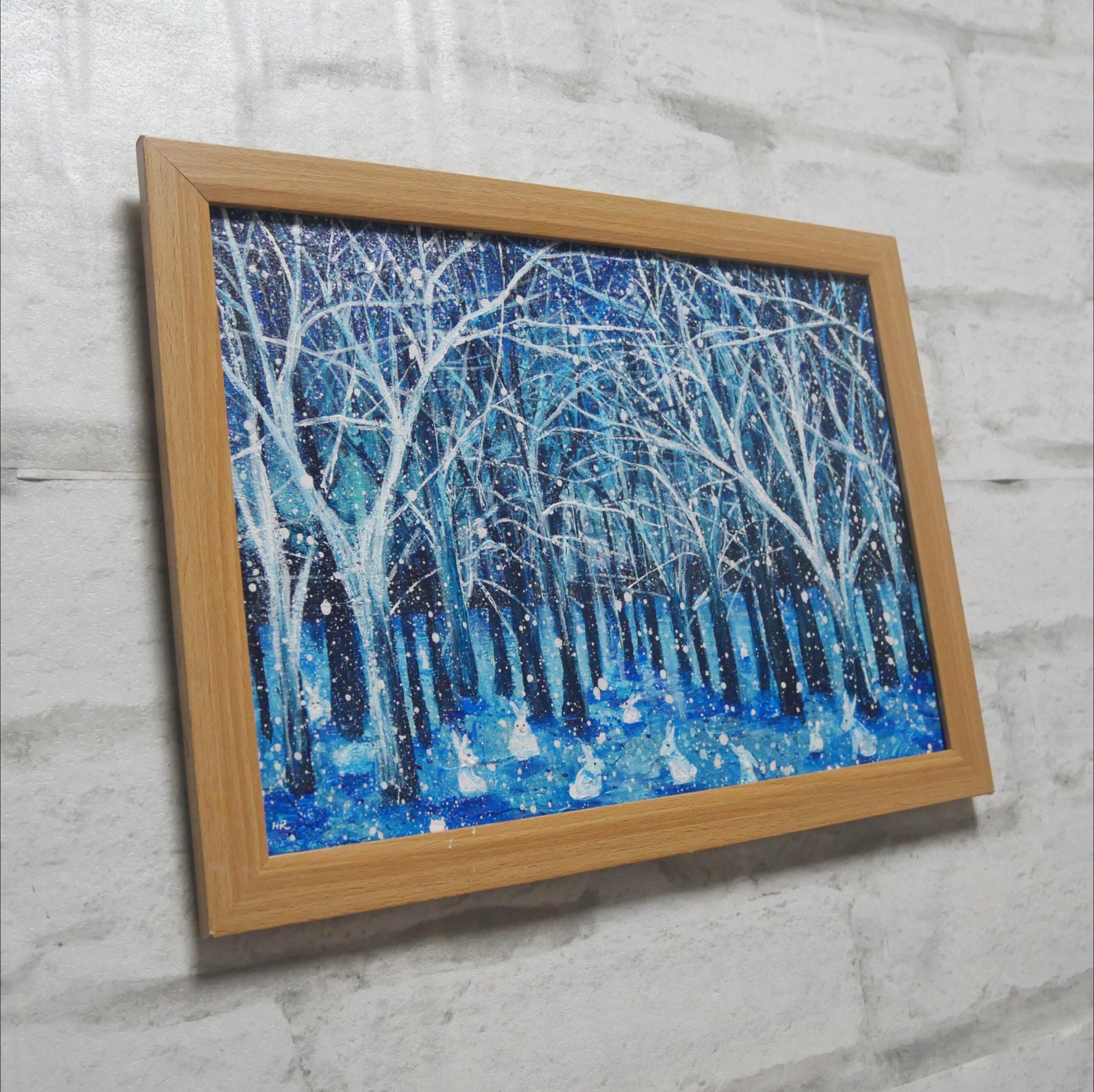 冬の静寂に包まれた森で、愛らしいうさぎが雪の中でひっそりと佇む姿を描いた油彩画【冬の林の兎】。この作品は、しんしんと降り積もる雪と、白い森の中に佇むうさぎの姿が、冬の美しさを一層引き立てています。ご自宅やオフィスに飾ることで、心がほっこりと温まる瞬間を皆さまにお届けします。