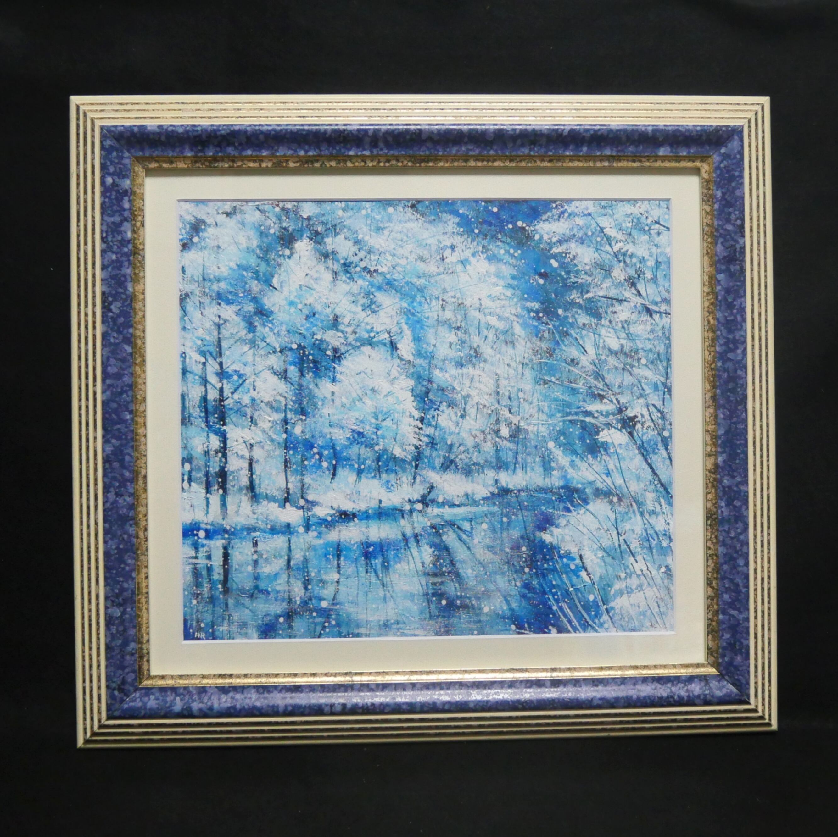 「白い池」は、冬の静謐な美しさを感じる魅力的な作品です。お部屋のインテリアを彩り、心に安らぎを与えてくれることでしょう。ぜひ、お気軽にお手に取って、その美しさをご体感ください。