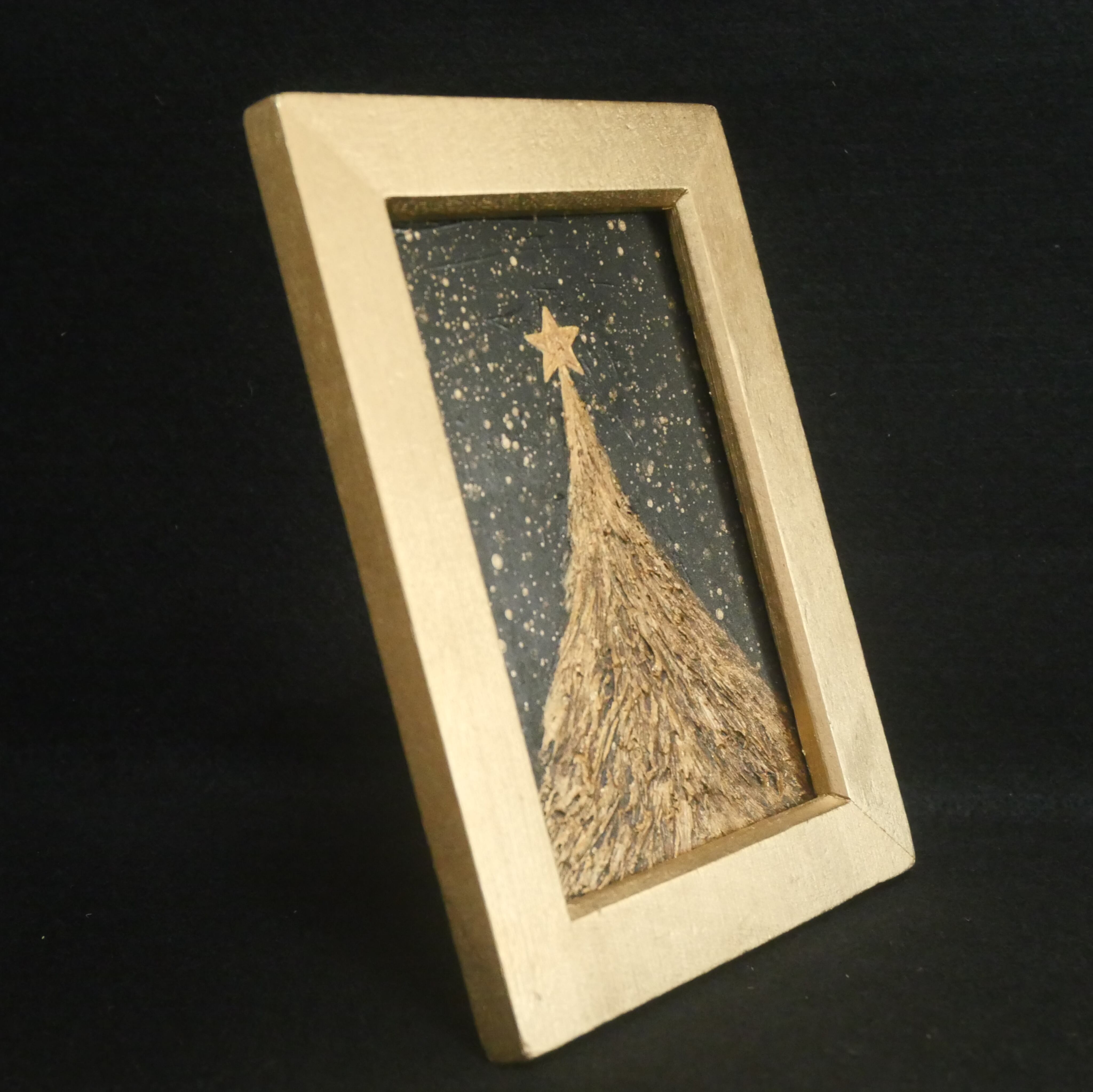 油絵 油彩 油彩画 ミニ絵画 【黄金クリスマスツリー】