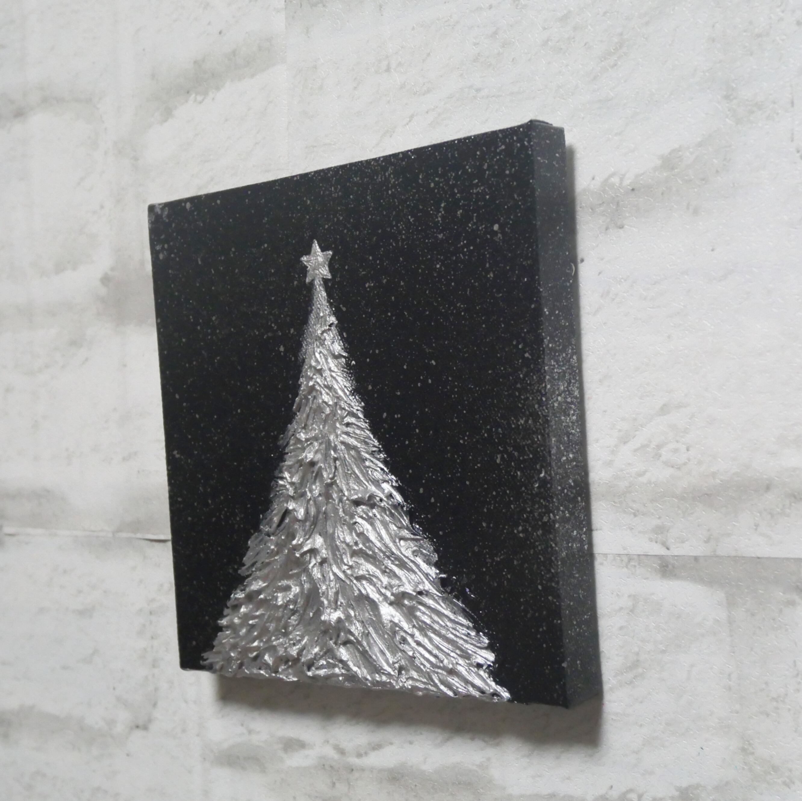 油絵 油彩 油彩画 絵 絵画 アートパネル【銀色クリスマスツリー】