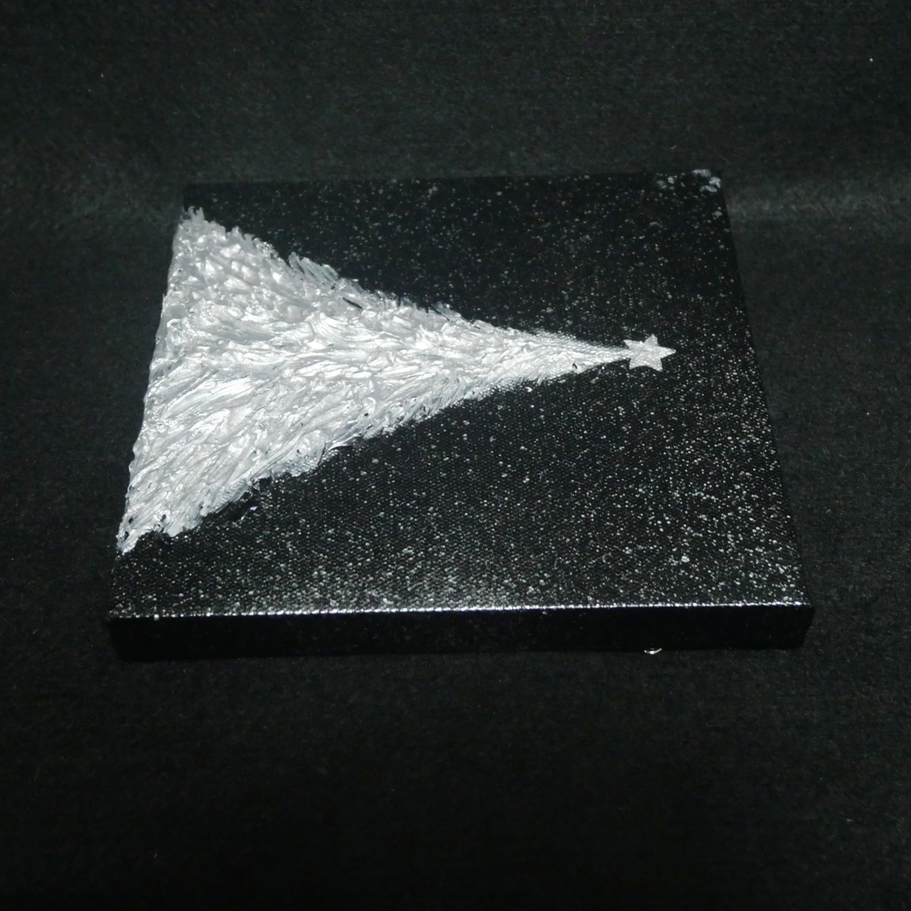 「銀色クリスマスツリー」は、背景に黒を配し、銀色の雪が舞う幻想的なシーンにクリスマスツリーが描かれた、特別な油彩作品です。神秘的な背景に映える銀色のツリーは、見る人の心を惹きつけ、クリスマスの喜びとともに温かい気持ちを呼び起こします。このアートパネルは、クリスマスの季節にぴったりのアイテムです。